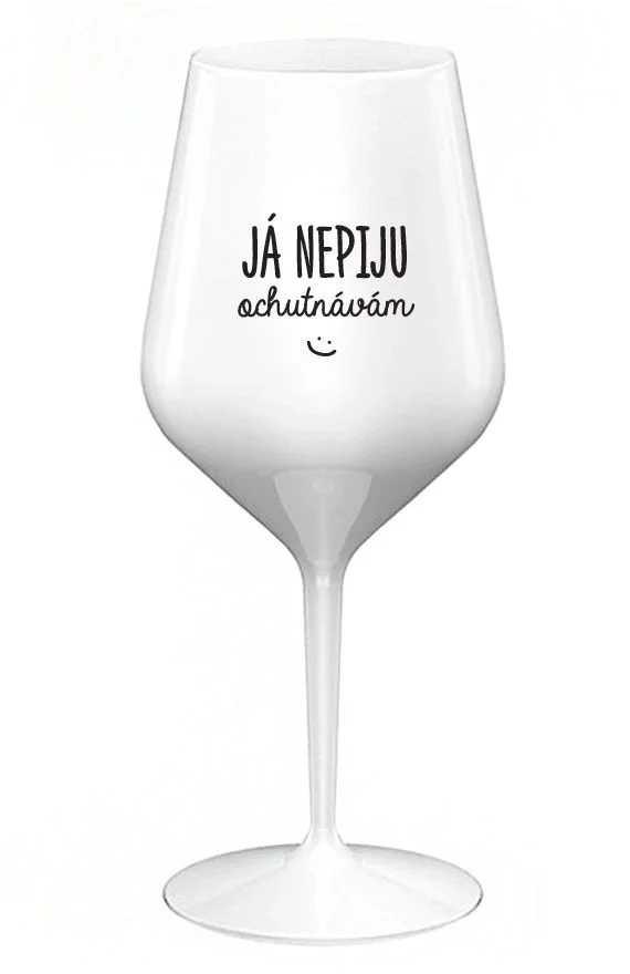 JÁ NEPIJU, OCHUTNÁVÁM - bílá nerozbitná sklenice na víno 470 ml
