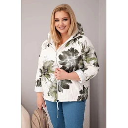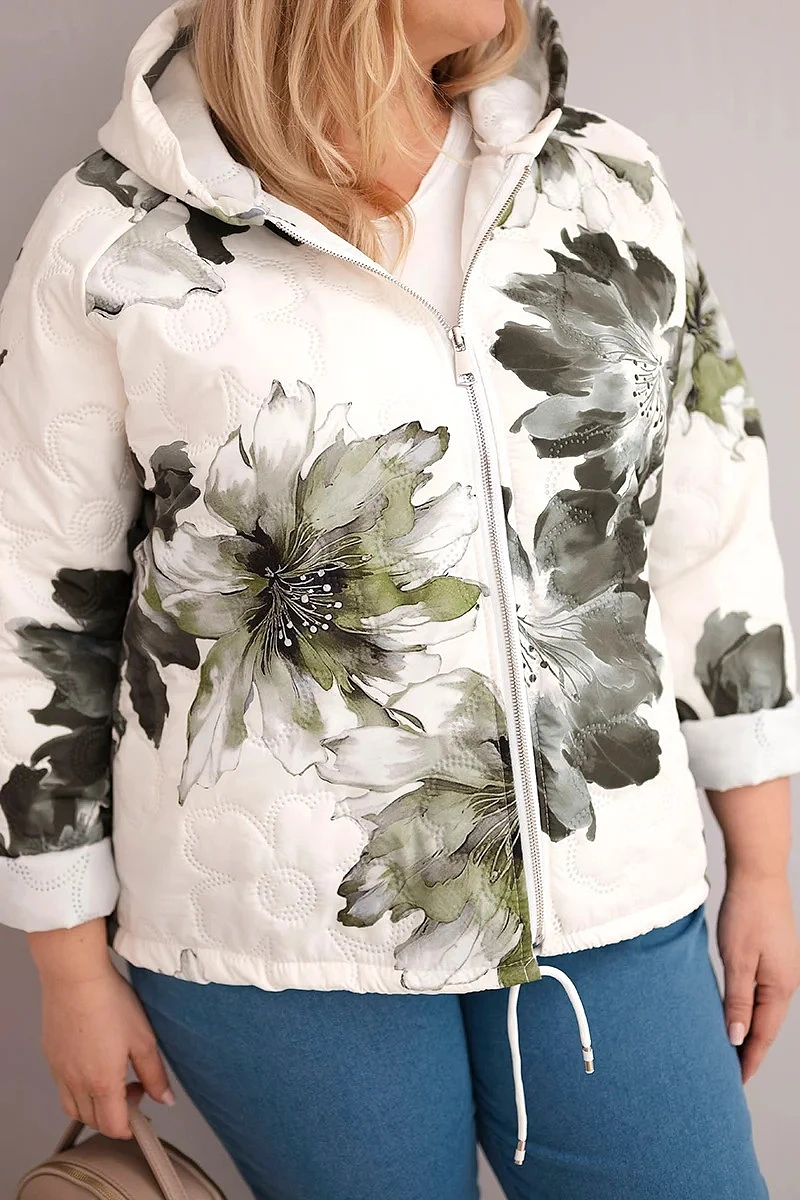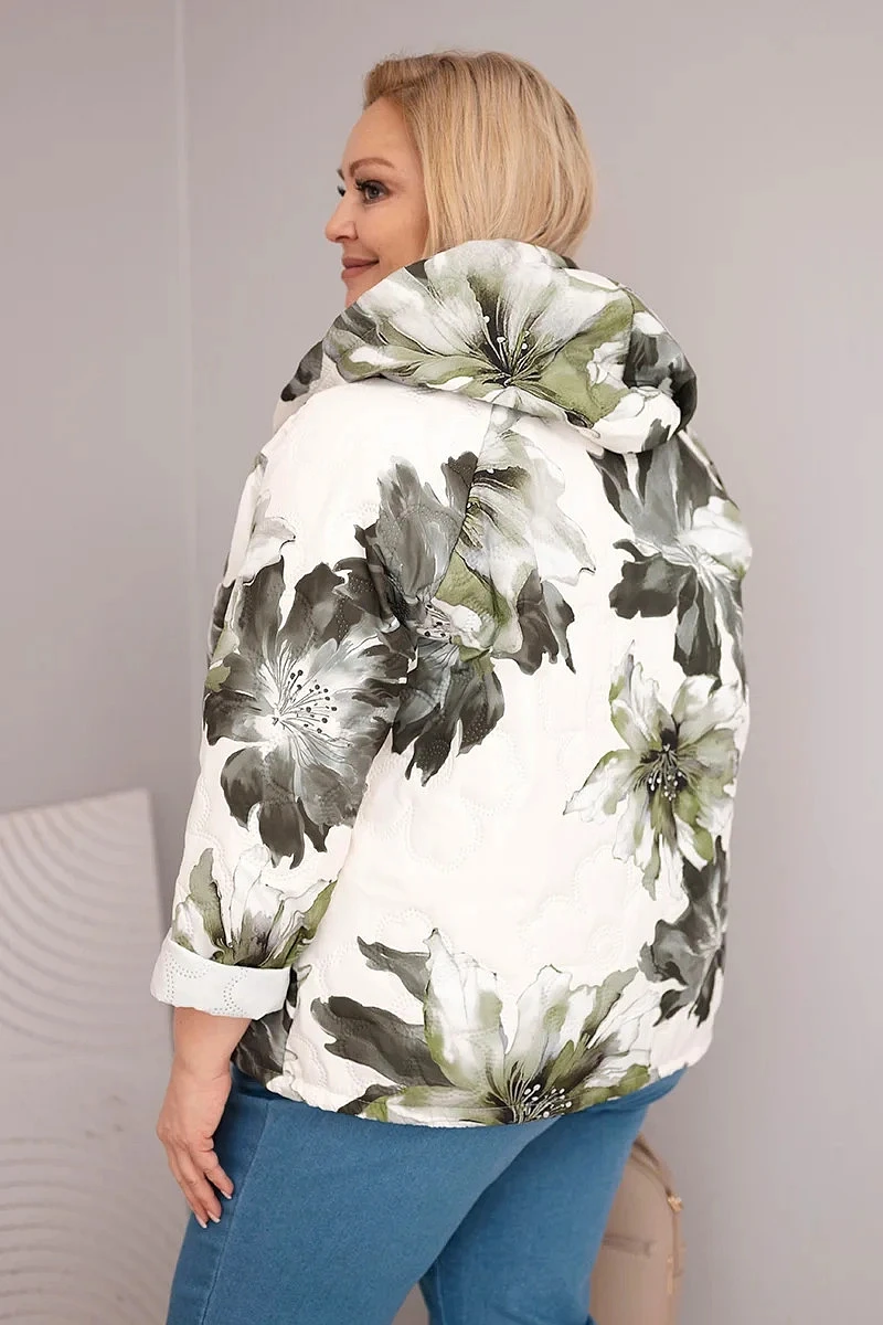 • Jarní dámská bunda Plus Size s květinovým vzorem khaki