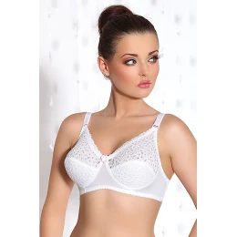 Podprsenka značky Jarpol, model 409. Svislé velrybí kostice na bocích. Nastavitelná ramínka bez možnosti odepnutí. Plastové háčky na ramínka. Zapínání na háčky. Místo zapínání: na zádech. 2 řady svislých výšivek. 2 stupně vodorovných výšivek. Výrobek je vyroben z 87 % polyamidu, 13 % elastanu. Dámský výrobek. Vlastnosti výrobku: klasický měkký materiál s krajkou.
