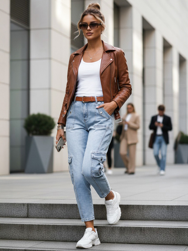 Model sprawdza się na co dzień, do pracy w swobodnym dress codezie, na spacer, zakupy lub spotkanie w mieście. Można łączyć je z dopasowanym topem, T-shirtem, bluzą albo krótką kurtką, budując stylizacje casualowe i streetwearowe.