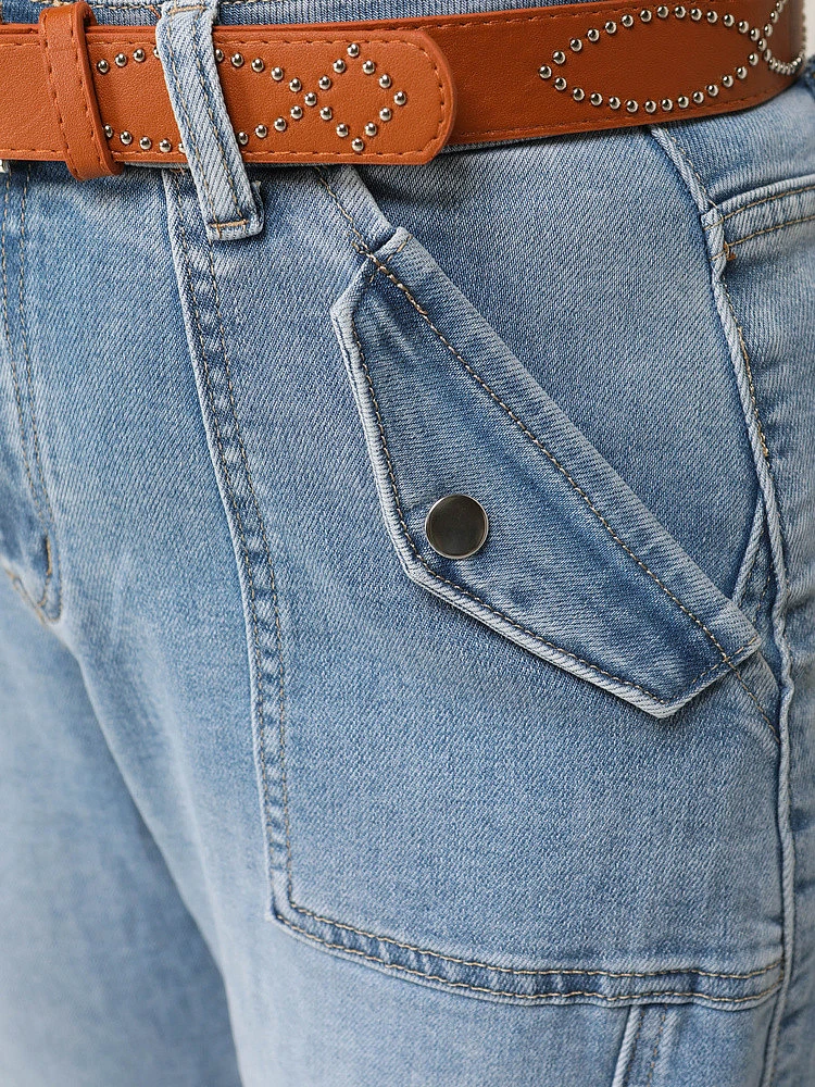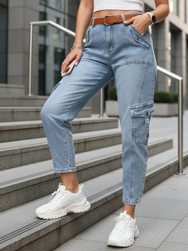 Jeansy damskie cargo UY2923 jasnoniebieskie