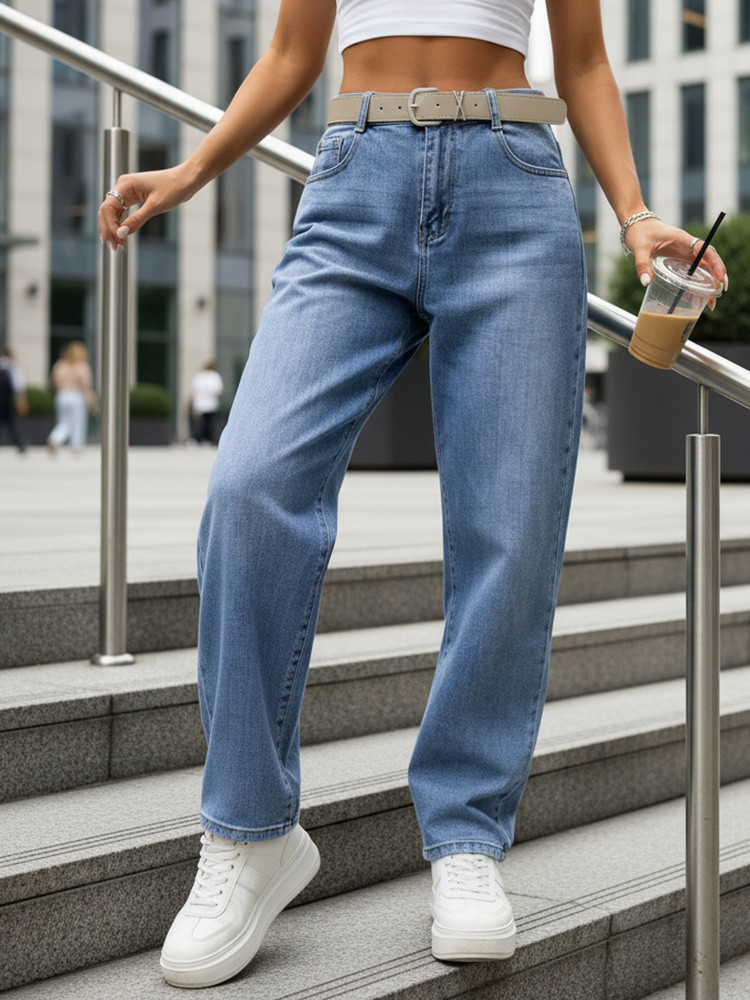 Jeansy damskie baggy z paskiem UY2945 niebieskie