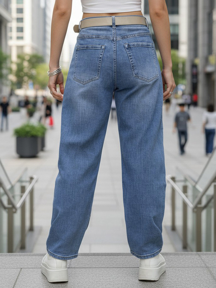 Jeansy baggy mają luźny, swobodny krój, który zapewnia komfort noszenia i nadaje stylizacji modny, miejski charakter.