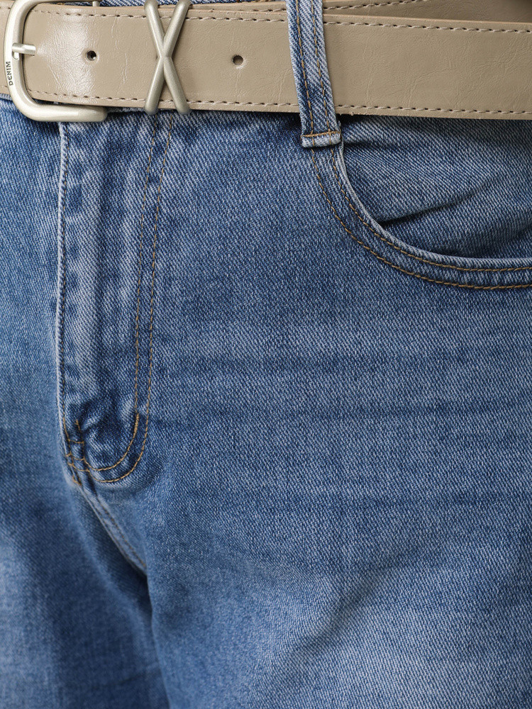 Jeansy damskie niebieskie z paskiem model 22102013 - FashionStreet
