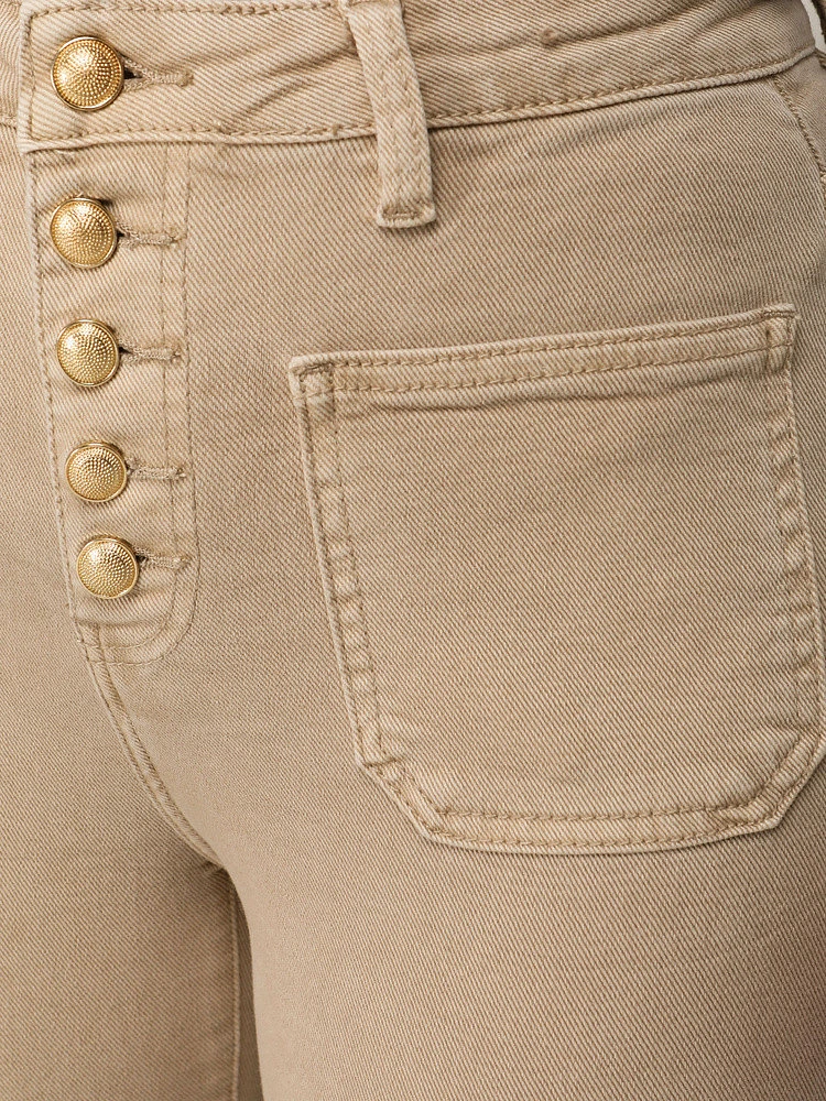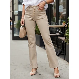 Model o nowoczesnym kroju łączy wygodę z eleganckim wyglądem. Wysoki stan podkreśla talię i nadaje sylwetce proporcji, a szerokie nogawki zapewniają swobodę ruchów. Charakterystyczne zapięcie na guziki przyciąga uwagę i dodaje stylowego akcentu. Sprawdzą się zarówno w codziennych, jak i bardziej dopracowanych stylizacjach.