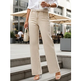 Jeansy damskie wide leg z wysokim stanem beżowe model 22120950 - FashionStreet