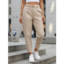 Jeansy damskie z mom fit z paskiem beżowe model 22038518 - FashionStreet
