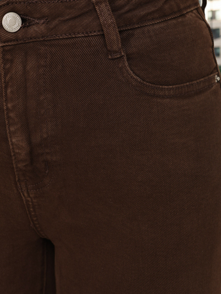 Jeansy damskie z wysokim stanem brązowe FashionStreet UY2910