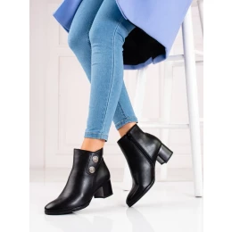 Jedinečné černé dámské kotníčkové boty na širokém podpatku