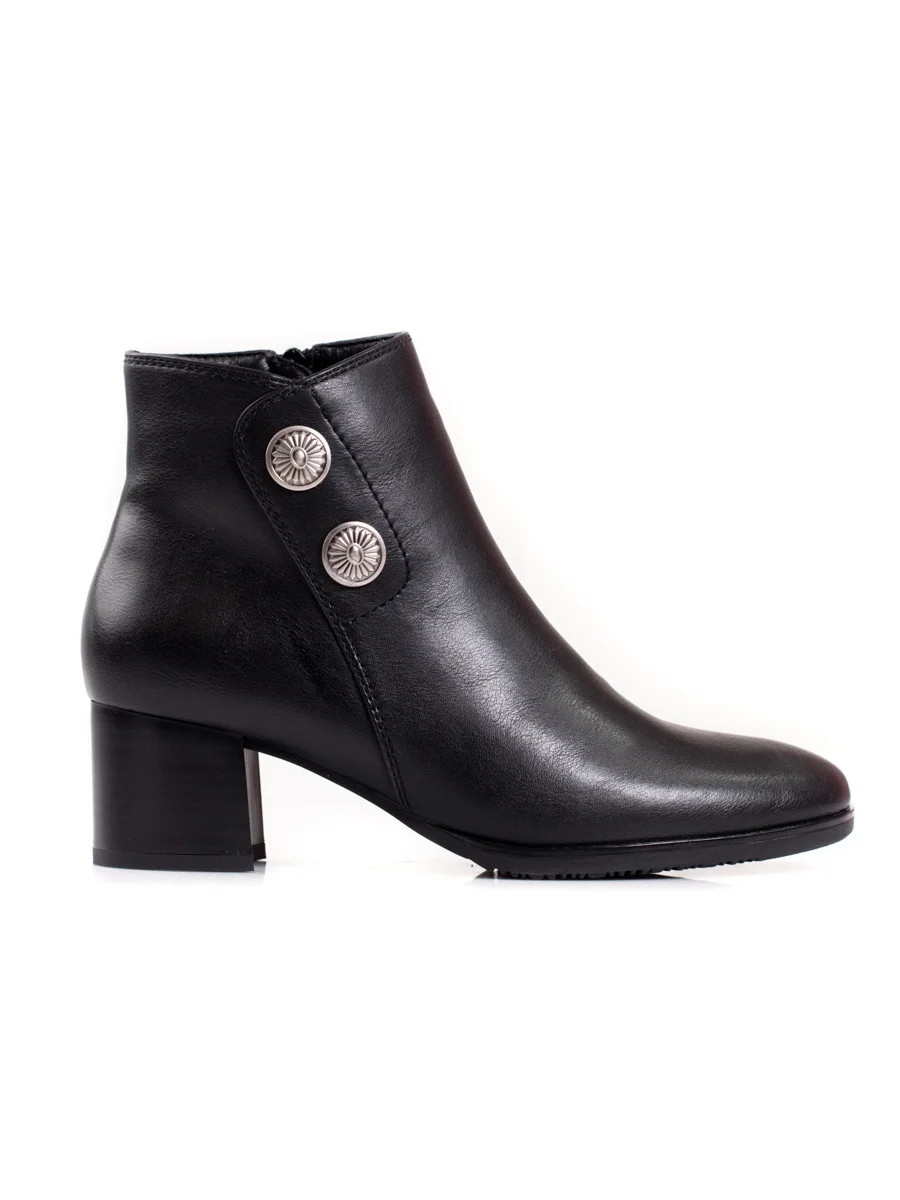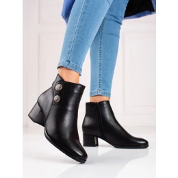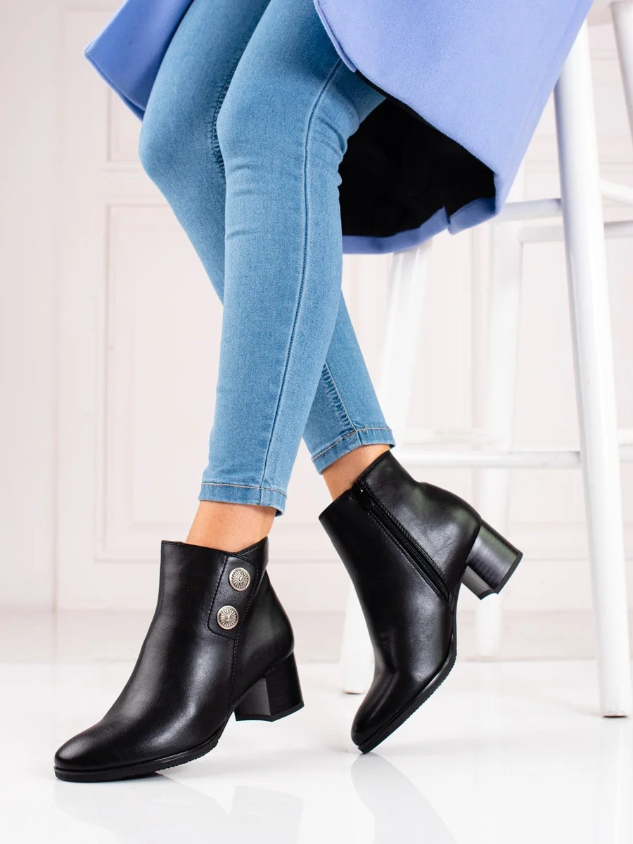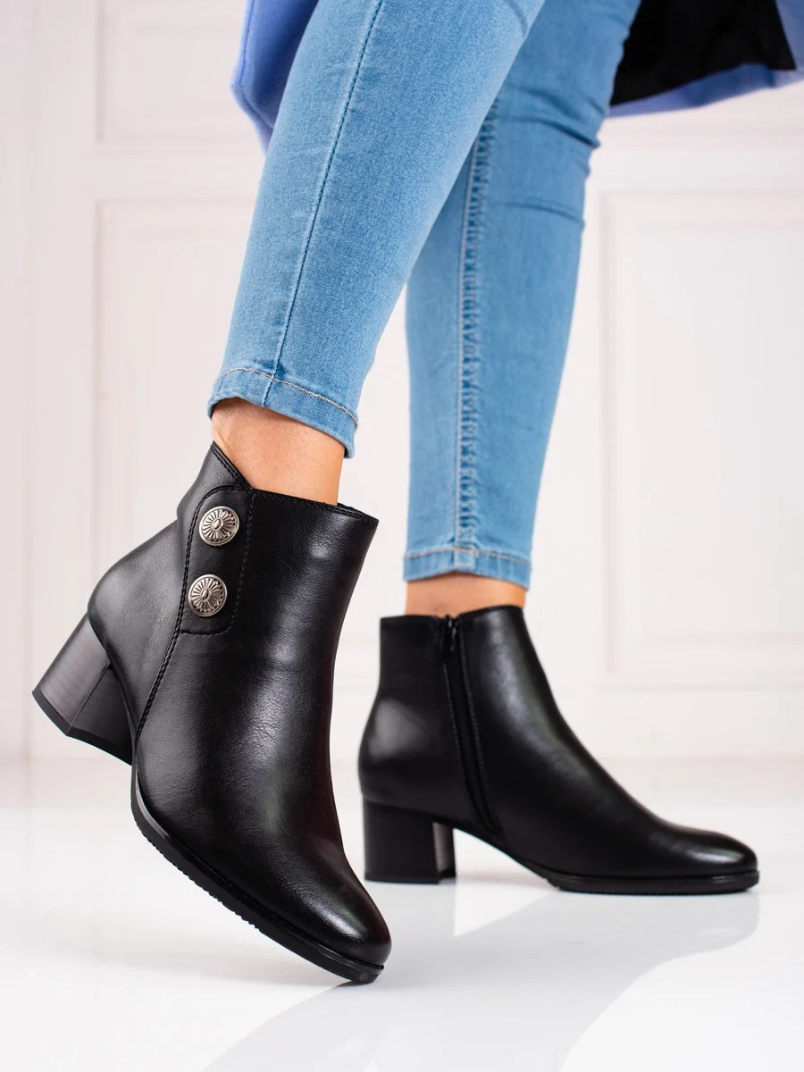 Jedinečné černé dámské kotníčkové boty na širokém podpatku