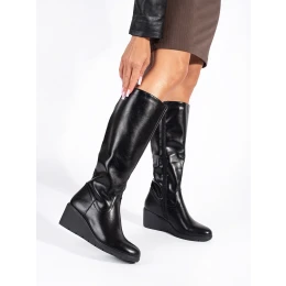 Jedinečné černé dámské kozačky na klínku