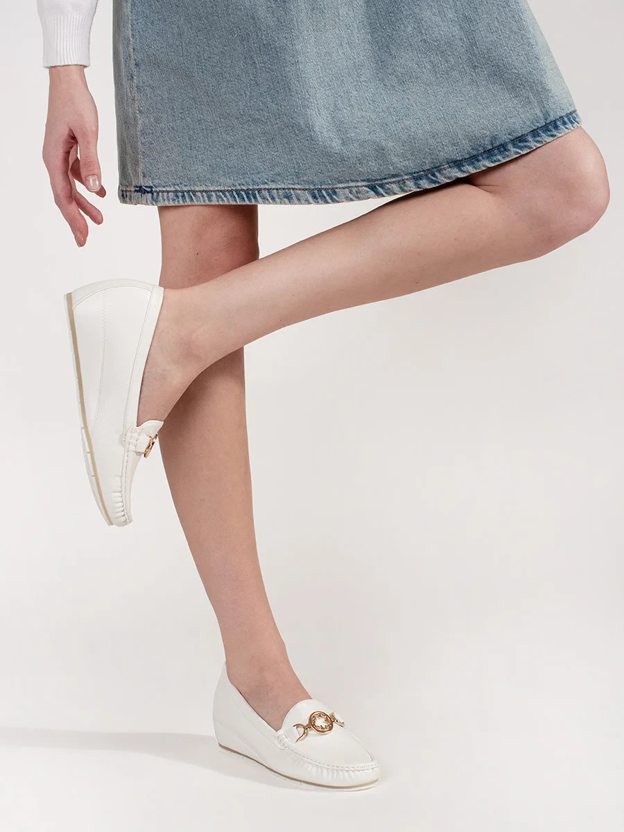 Přidání recenze k Jedinečné dámské bílé mokasíny na klínku