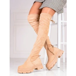 Jedinečné dámské kozačky hnědé na širokém podpatku