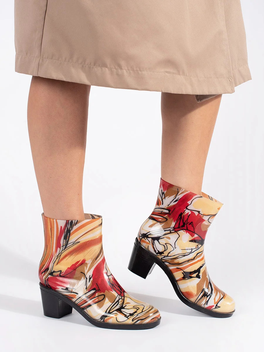 Jedinečné gumáky vícebarevné dámské na širokém podpatku