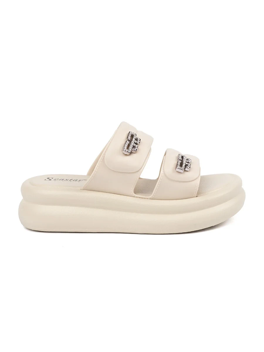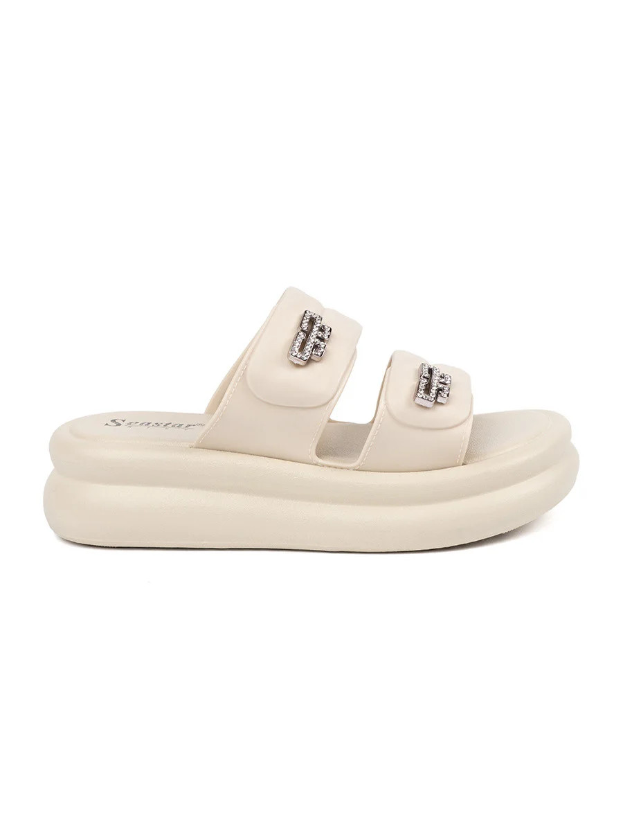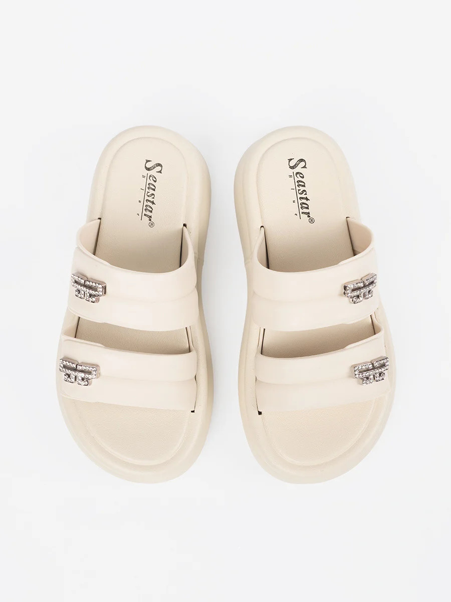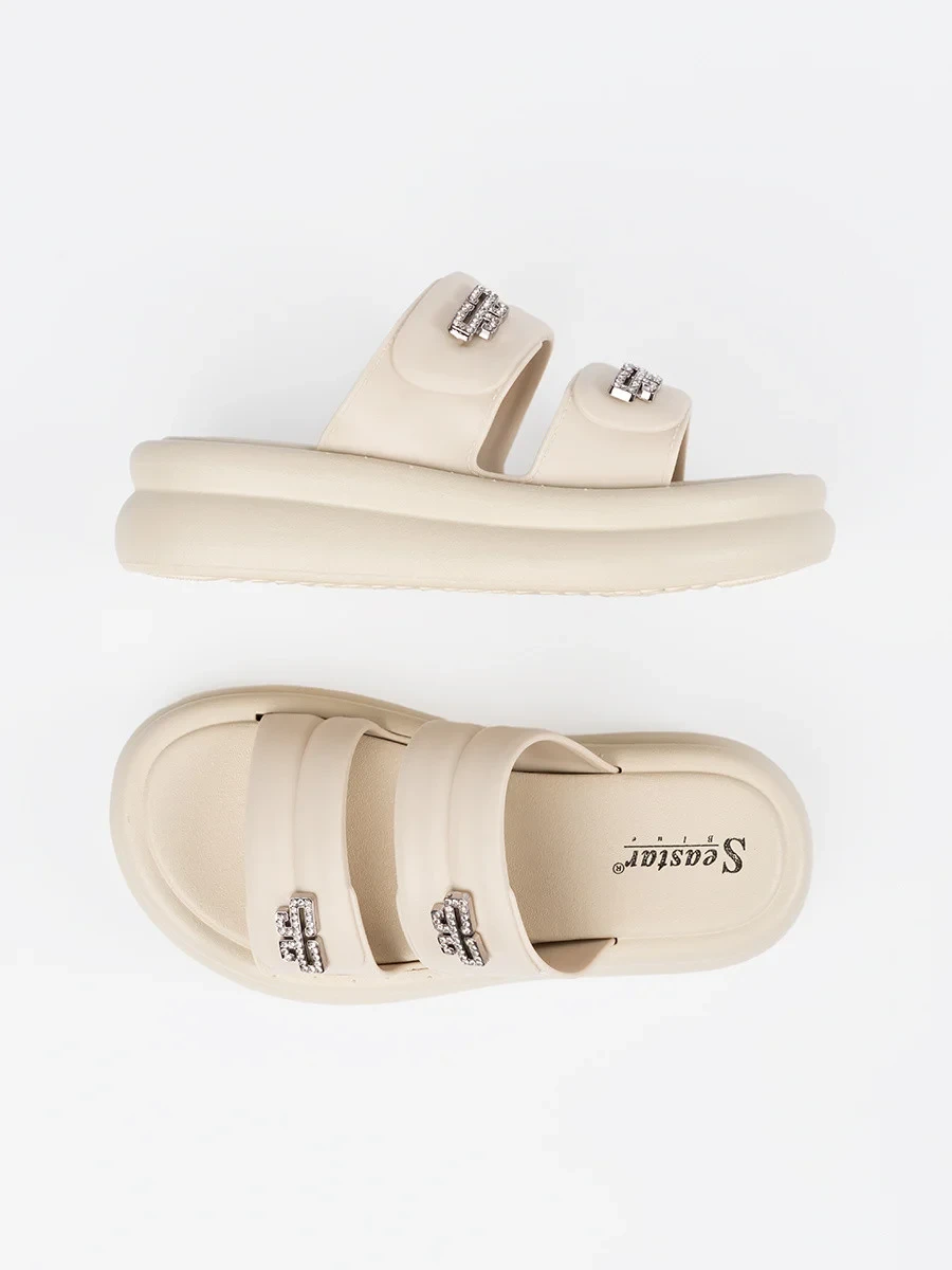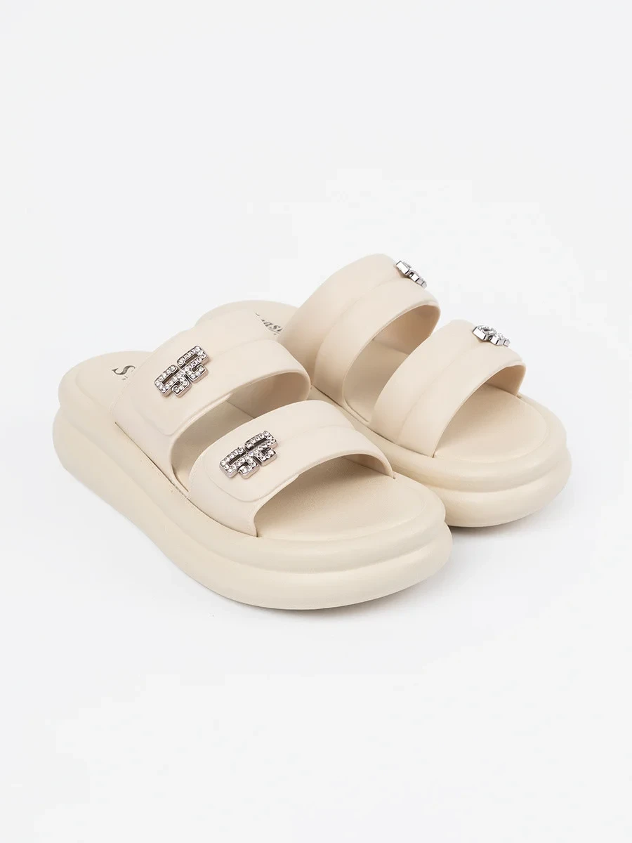 Jedinečné Jasnobeżowy dámské nazouváky platforma