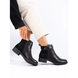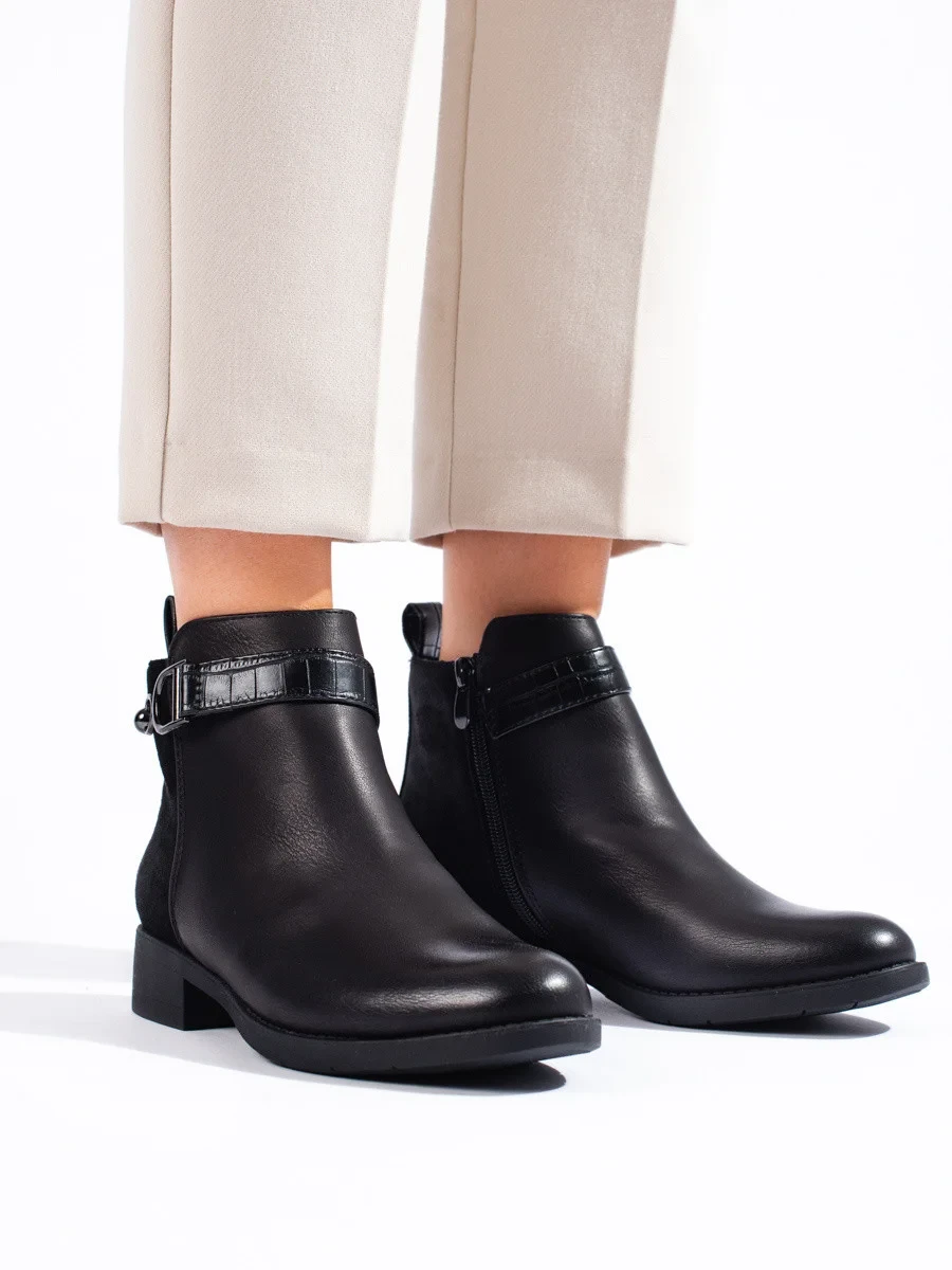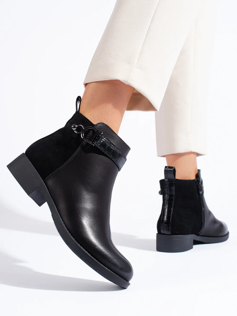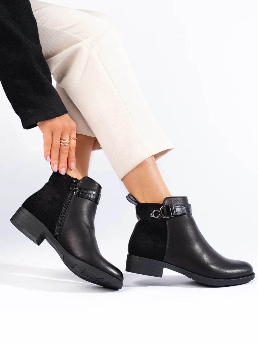 Jedinečné kotníčkové boty černé dámské na plochém podpatku
