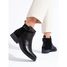 Jedinečné kotníčkové boty černé dámské na plochém podpatku