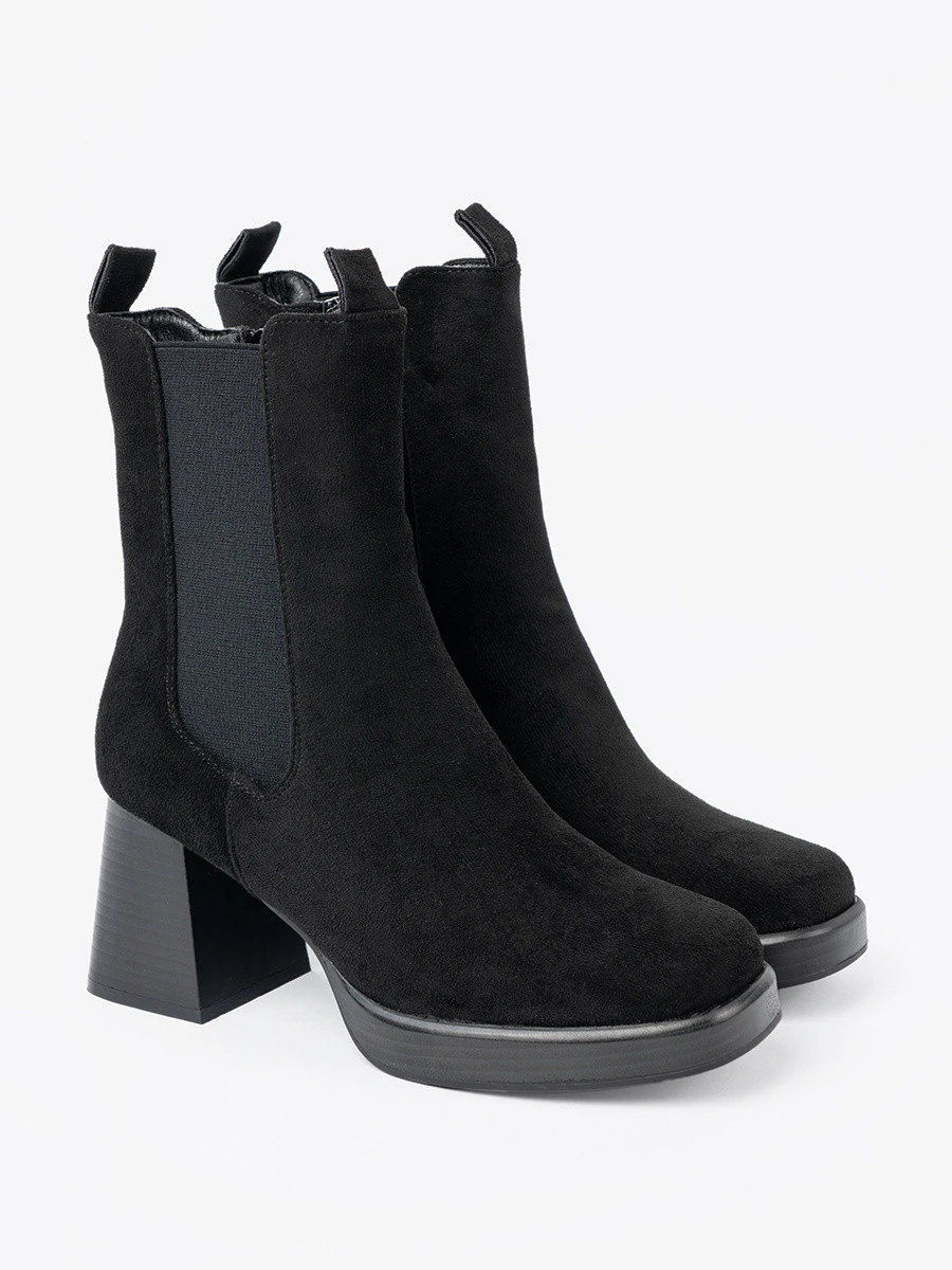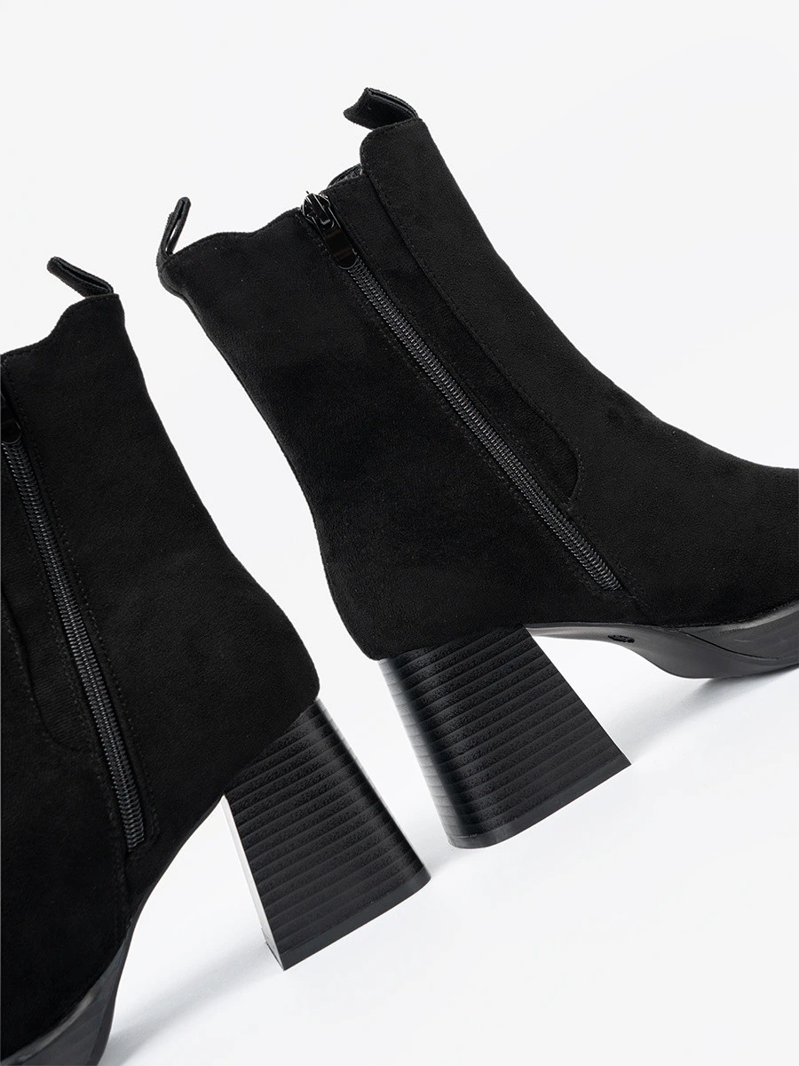 Jedinečné kotníčkové boty dámské černé na širokém podpatku