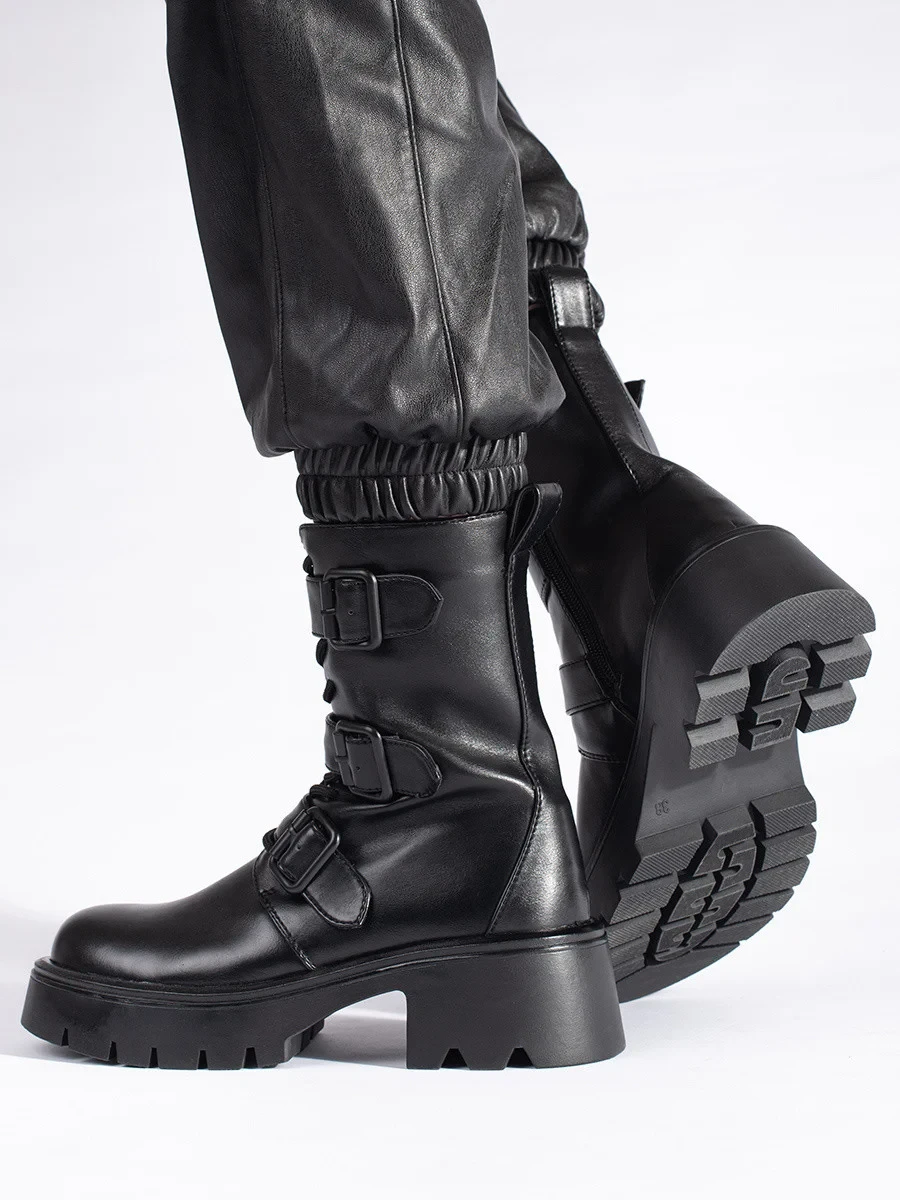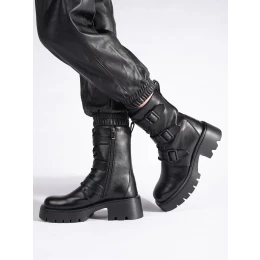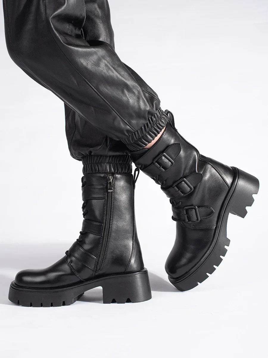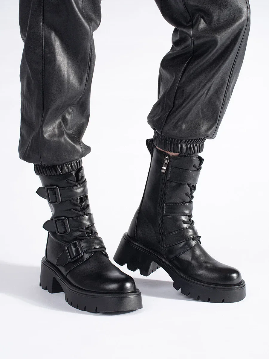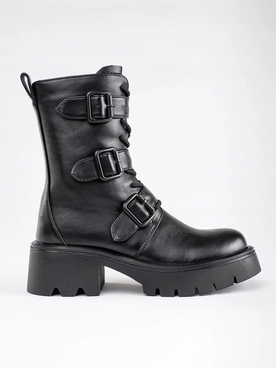 Jedinečné kotníčkové boty dámské černé na širokém podpatku