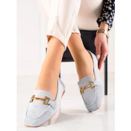 Jedinečné modré mokasíny dámské na plochém podpatku