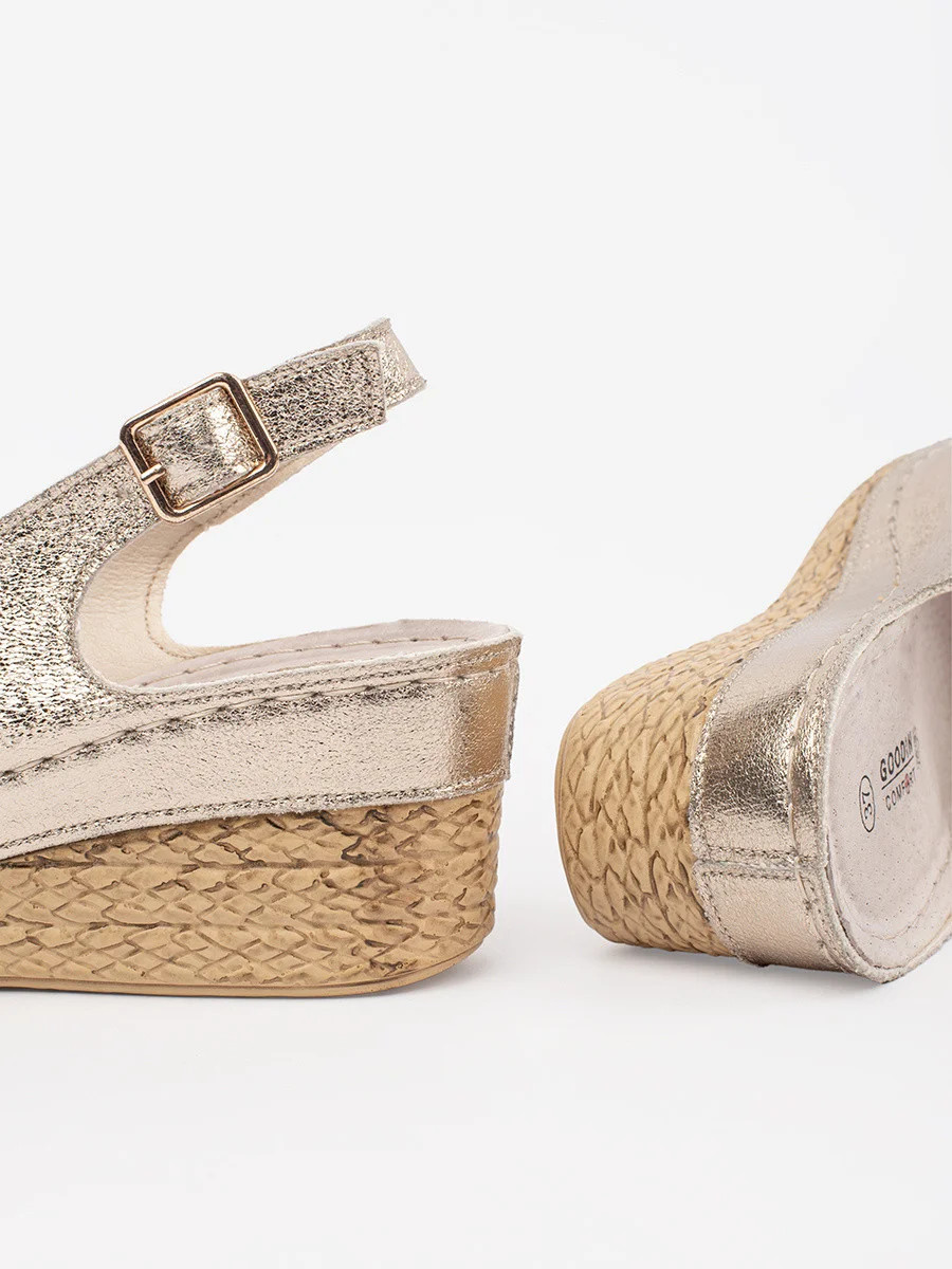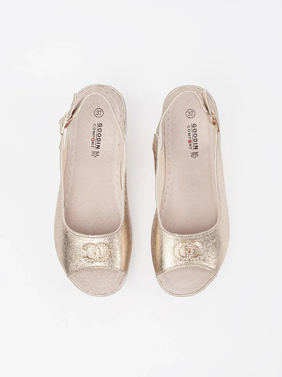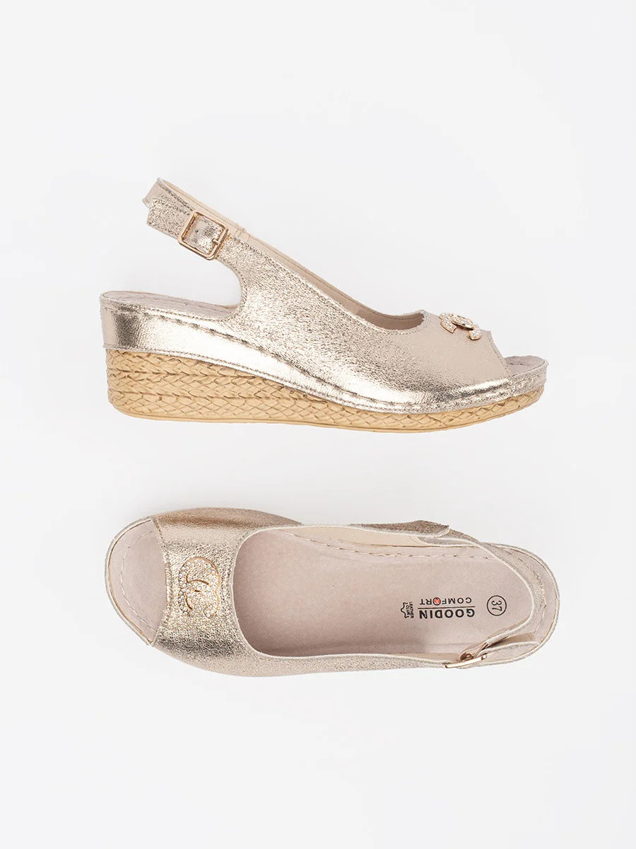 Přidání recenze k Jedinečné sandály dámské zlaté na klínku