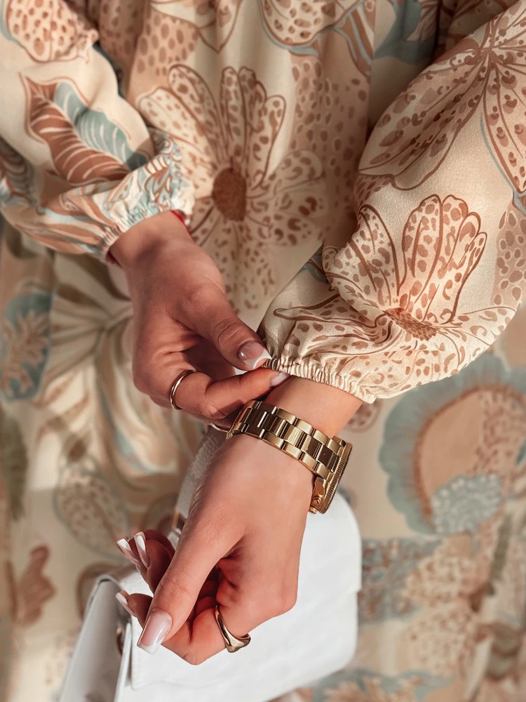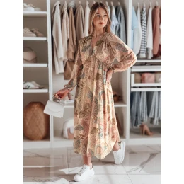 Sukienka damska w kwiaty LILOVIE ey2573 beżowa