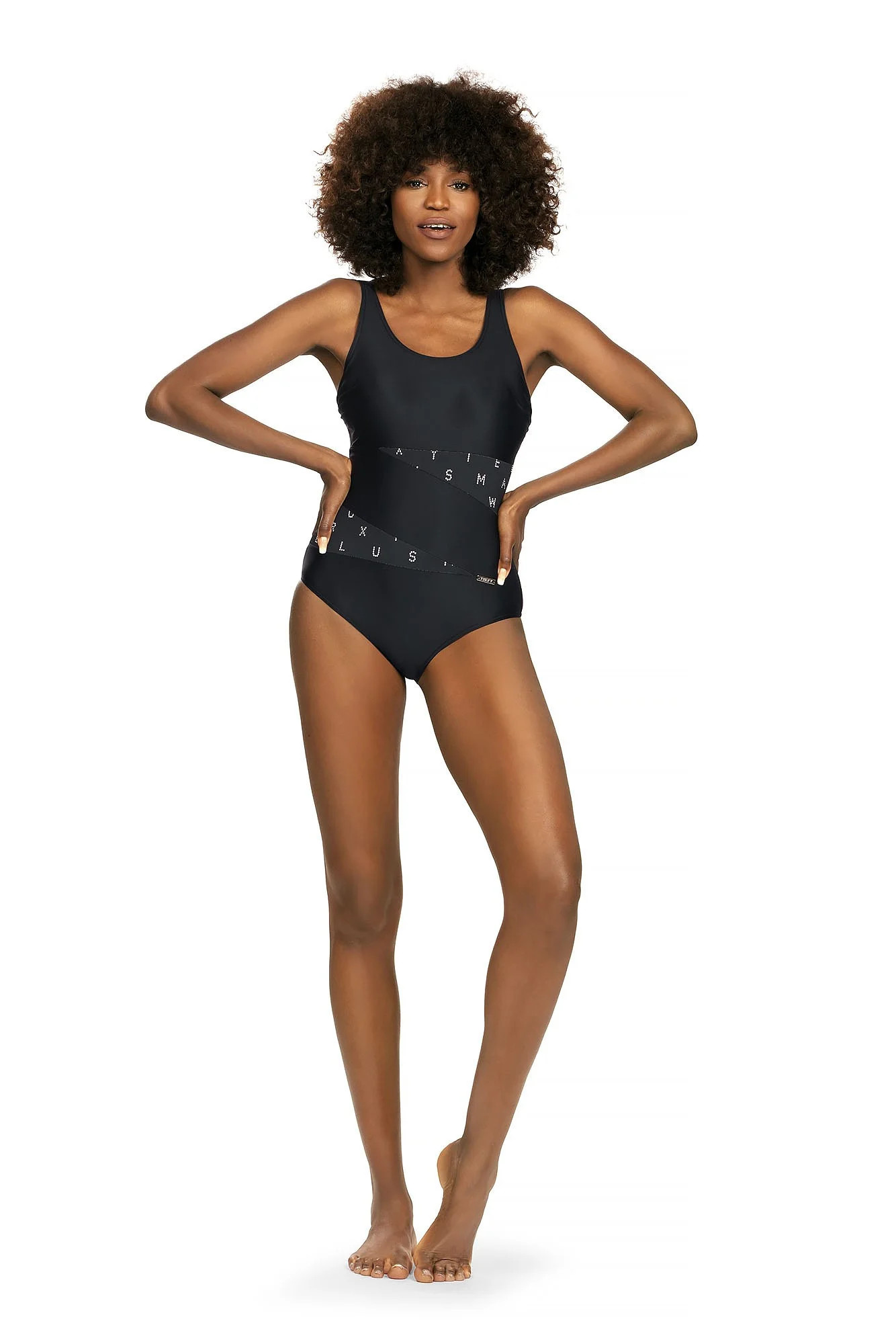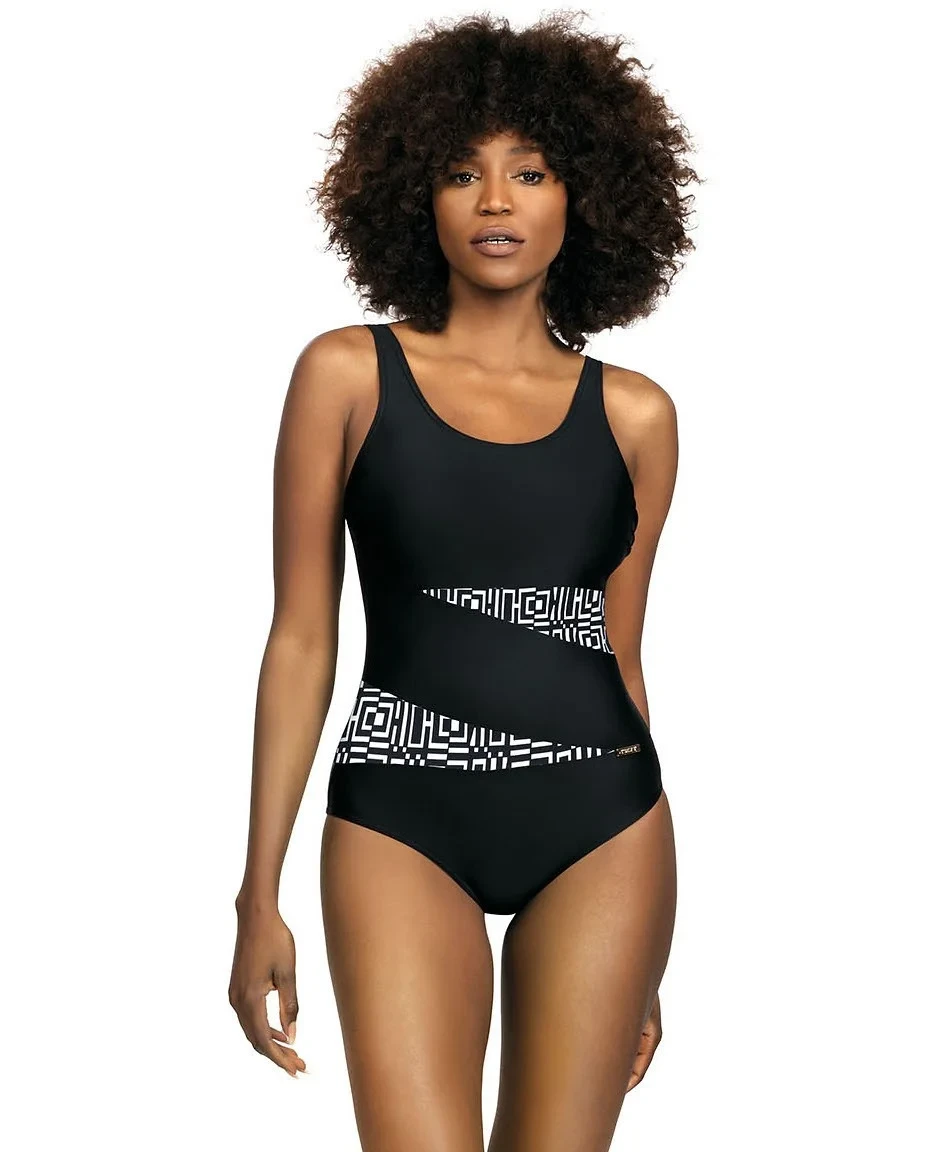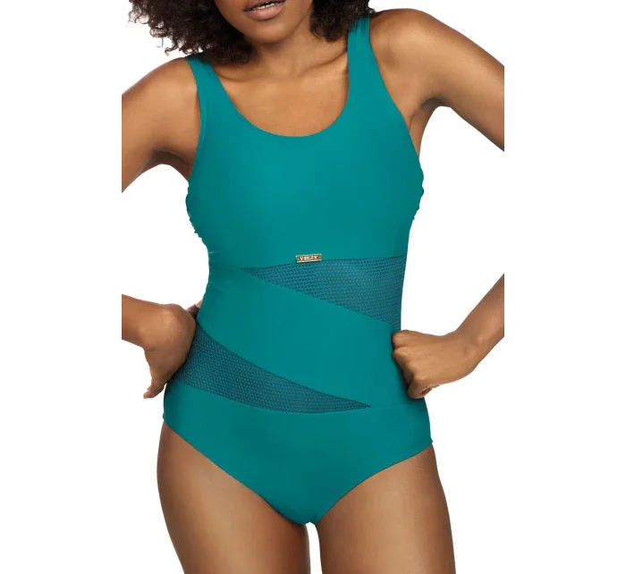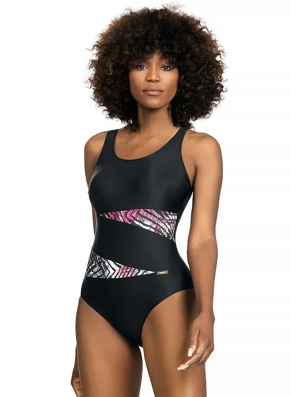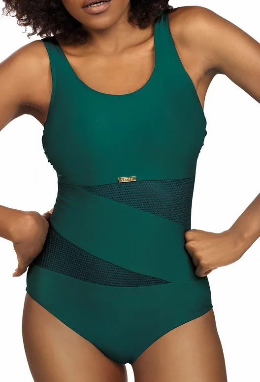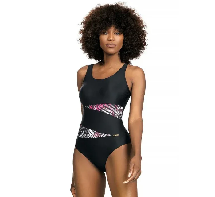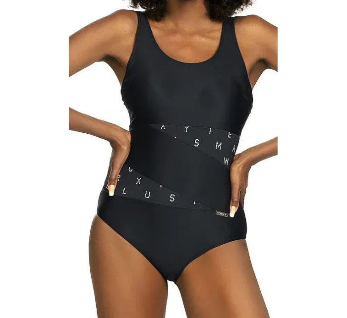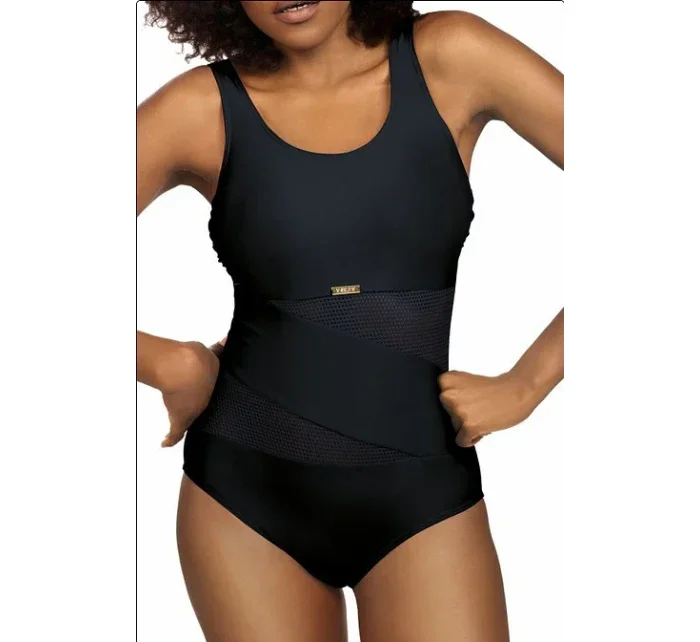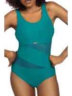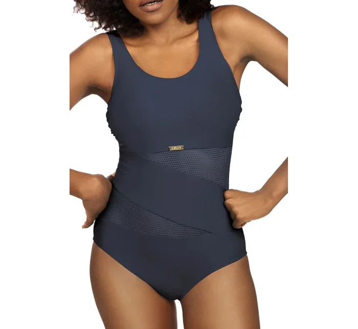 Plavky jsou ozdobené vsadkami ze síťoviny, nebo ze vzorovaného mikrovlákna. Model má na vnitřní straně vyztužené košíčky. Délku širokých ramínek je možné nastavit.