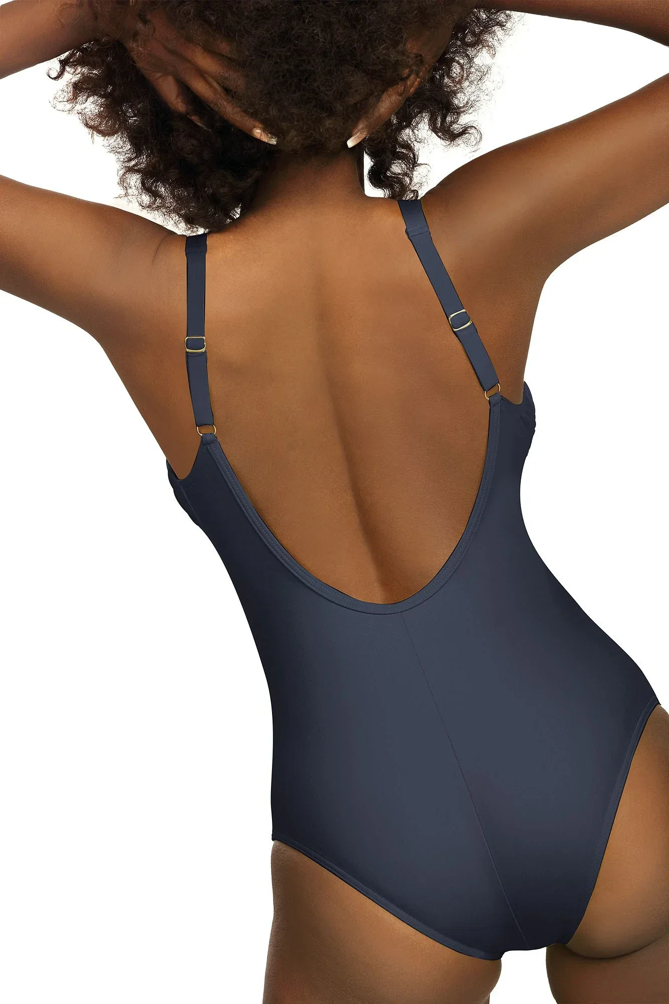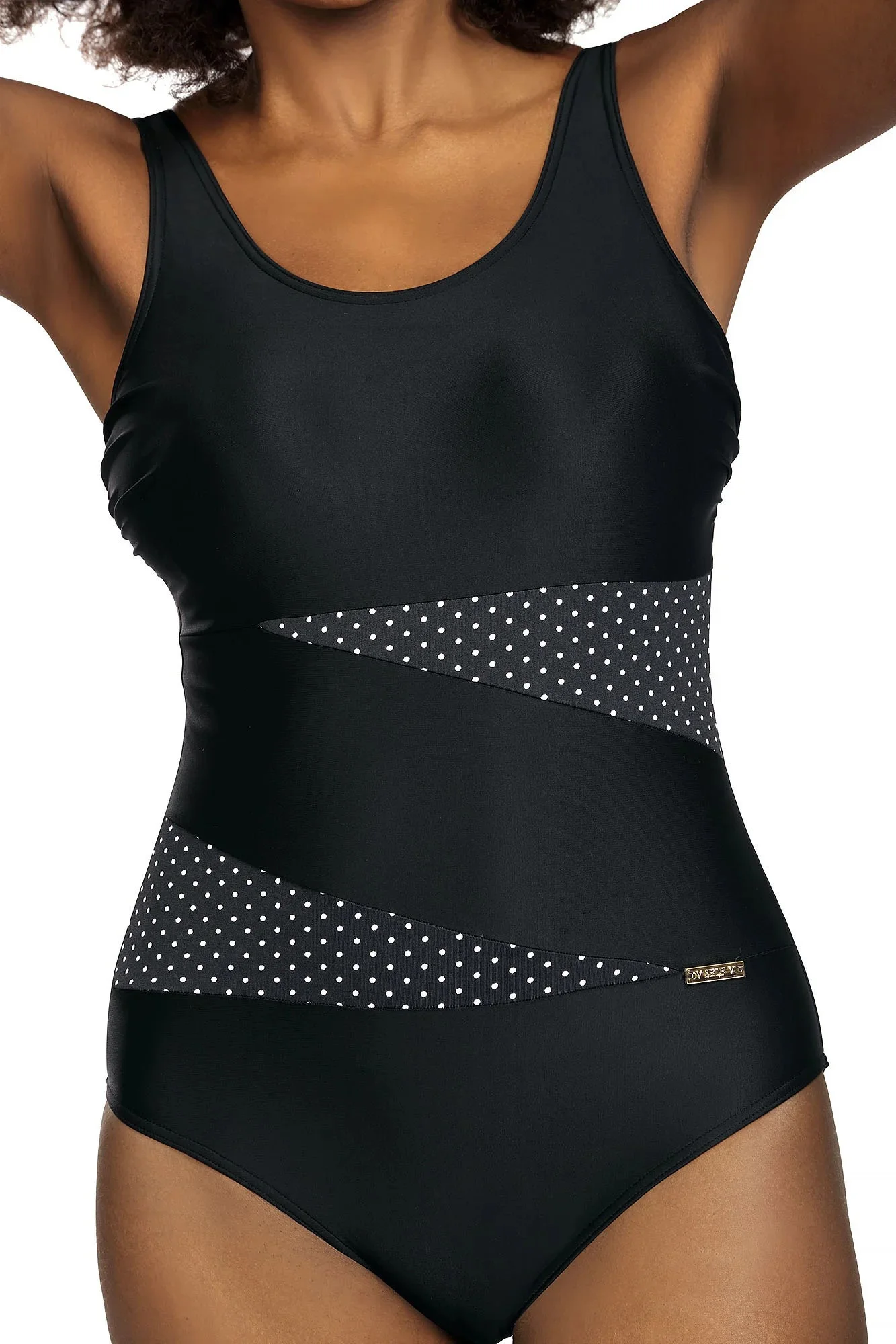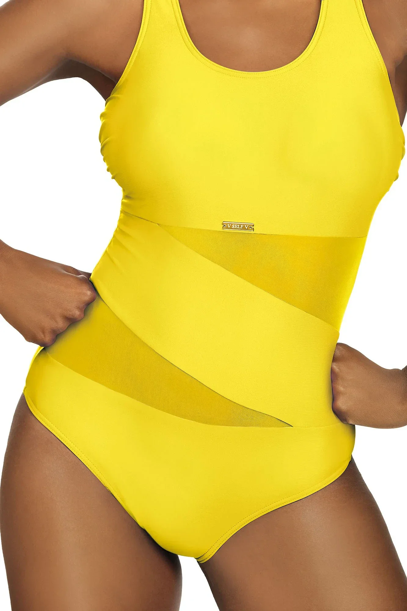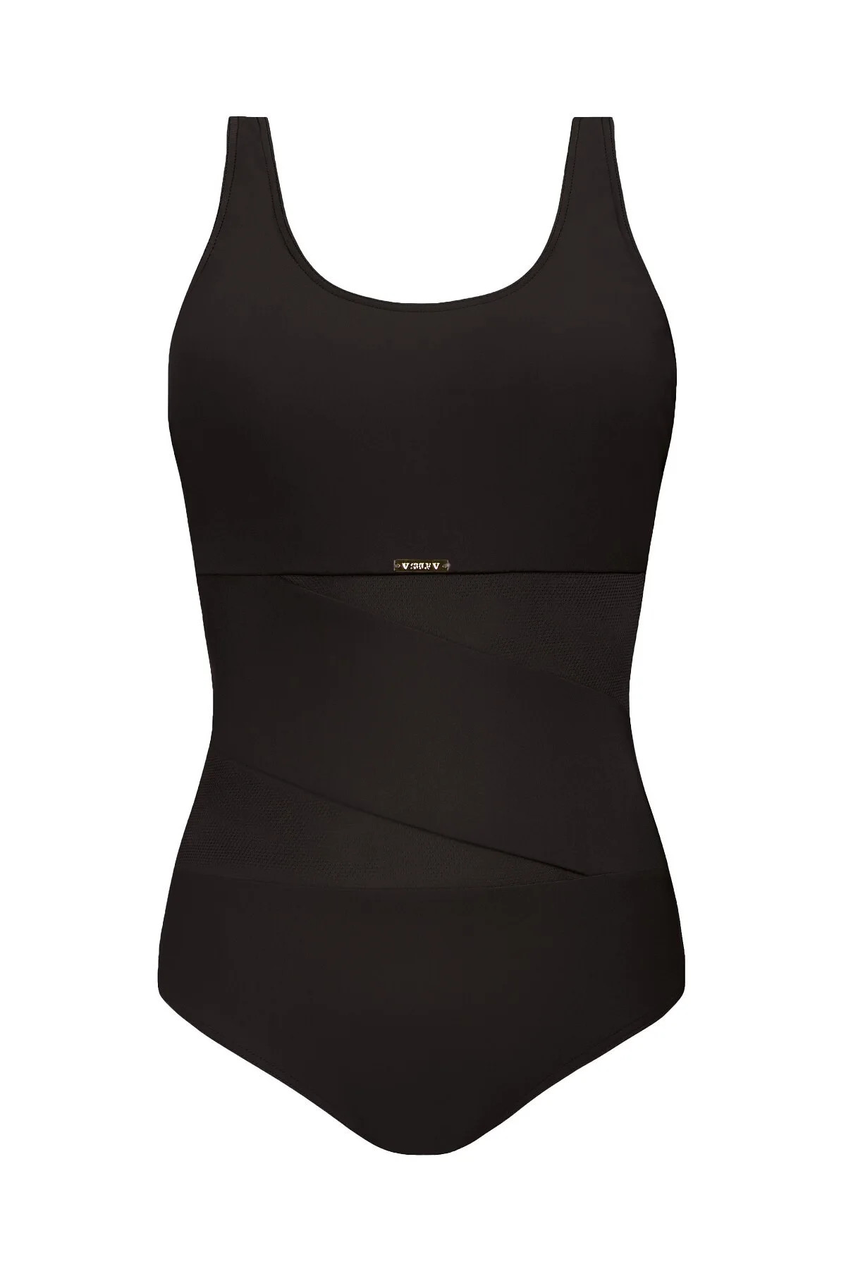 Plavky jsou ozdobené vsadkami ze síťoviny, nebo ze vzorovaného mikrovlákna. Model má na vnitřní straně vyztužené košíčky. Délku širokých ramínek je možné nastavit.