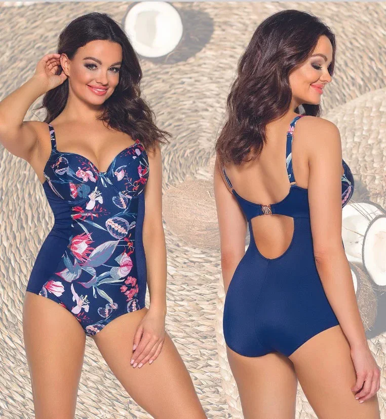 Produkt Jednodílné dámské plavky SKJ 47 tmavě modré s květy - Ava prodáváme v těchto velikostech: 75Ja barvách tm.modrá s květy5902058880519