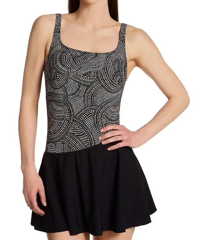 Jednodílné plavky se sukýnkou 6466 M2 černo-hnědé - Anita