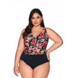 Ukwiecony SKJ 60 to doskonała alternatywa dla tradycyjnych strojów dwuczęściowych. Dwudzielna kompozycja stroju łączy wysmuklający biodra czarny dół z kwiecistą górą, która jest wsparta na szerokich ramiączkach, odciążających plecy. Wszyte w konstrukcję miseczki typu kopa solidnie podtrzymują biust, zapobiegając jego opadaniu. Dekolt w kształcie litery V pięknie podkreśla kulistość piersi, a subtelne marszczenia sprawiają, że sylwetka wydaje się lżejsza. Daj się zauroczyć w SKJ 60 i poczuj się wyjątkowo na plaży!