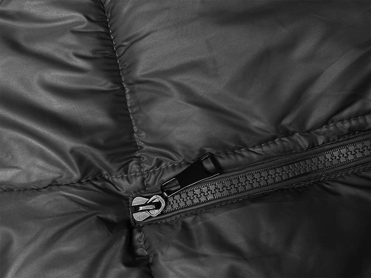 Vesta má volný střih, má dvě kapsy a zapíná se dvousměrným zipem a panelem s patentkami. Model má kapuci, kterou je možné odepnout. Vesta má délku do poloviny stehen.