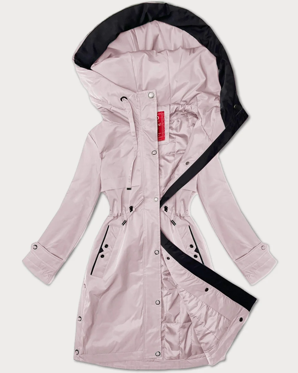 Jednoduchá dámská bunda v pudrově růžové barvě s kapucí model 20930861 - LHD