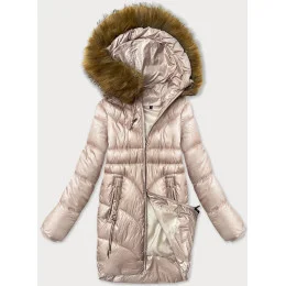 Jednoduchá dámská zimní bunda v perleťově růžové barvě s ozdobnými kapsami S'west (B8259-51)
