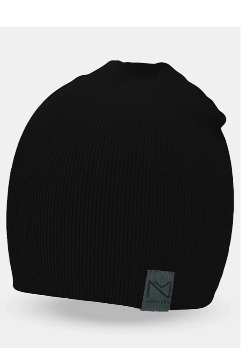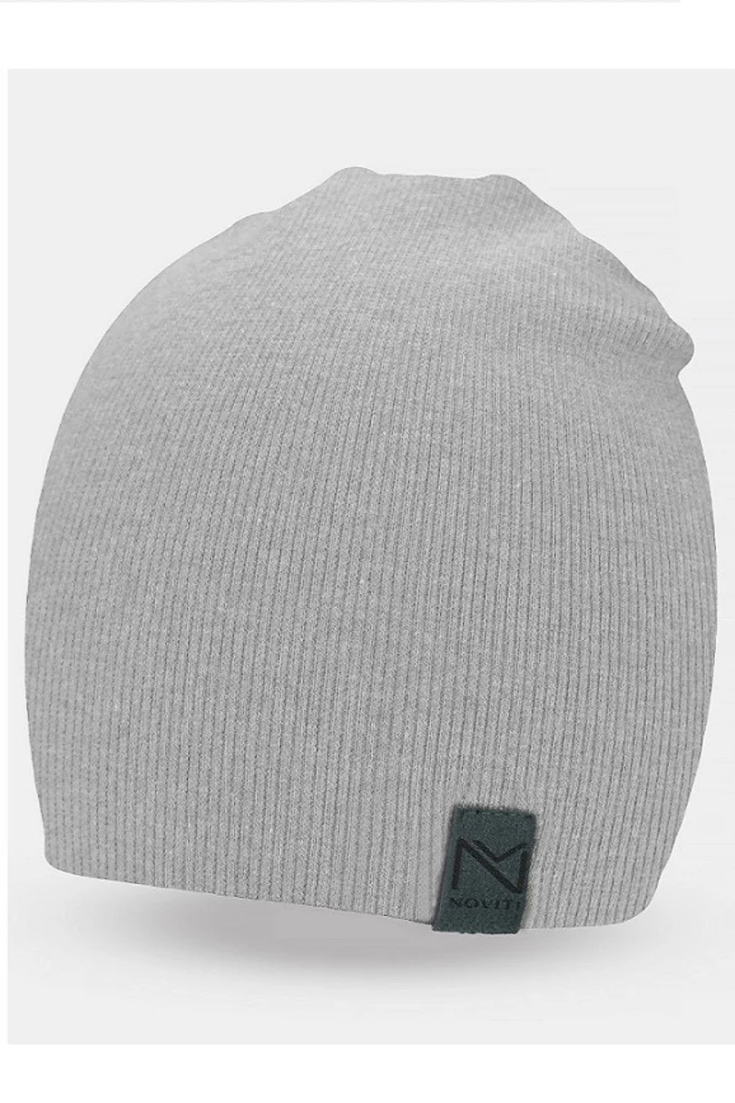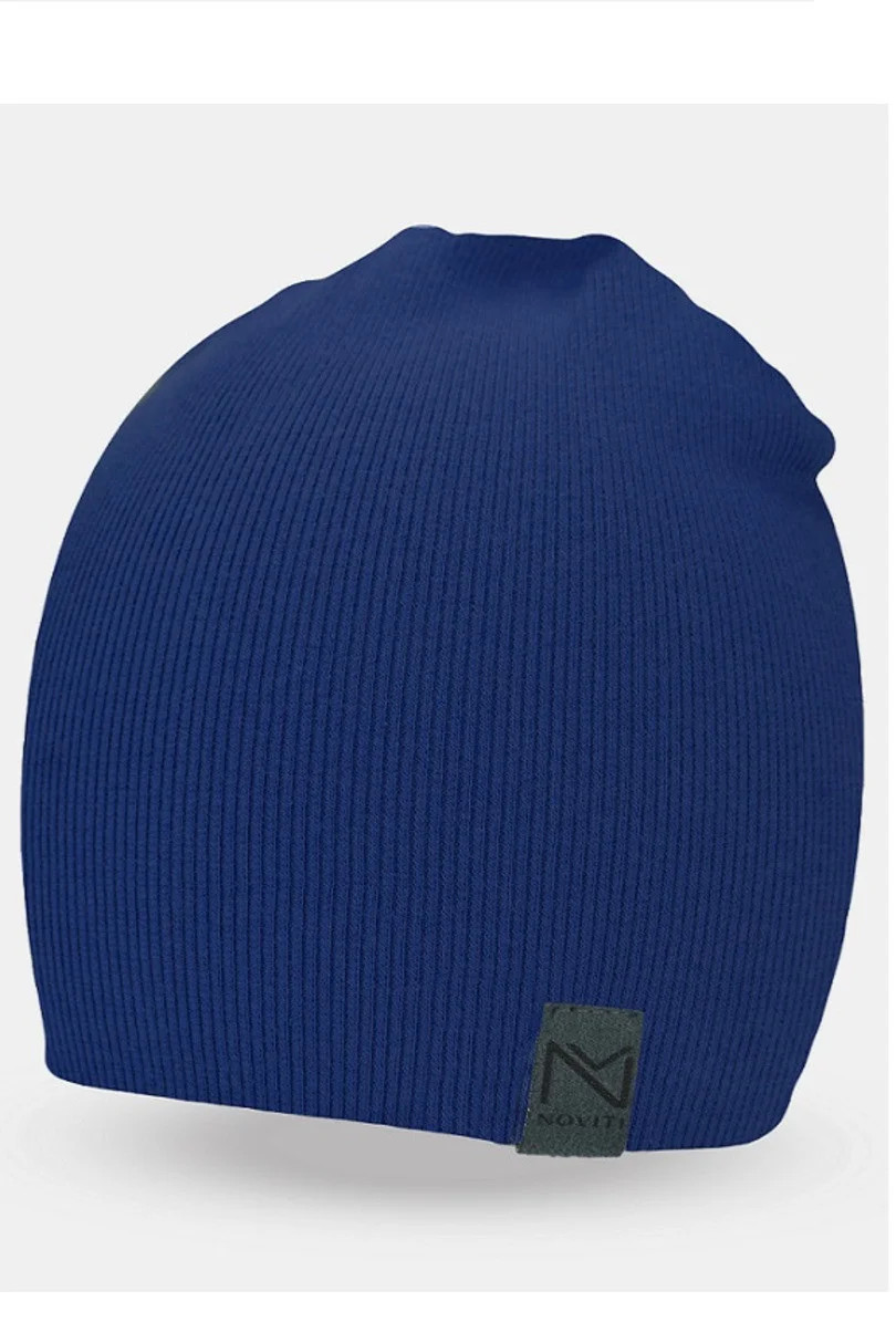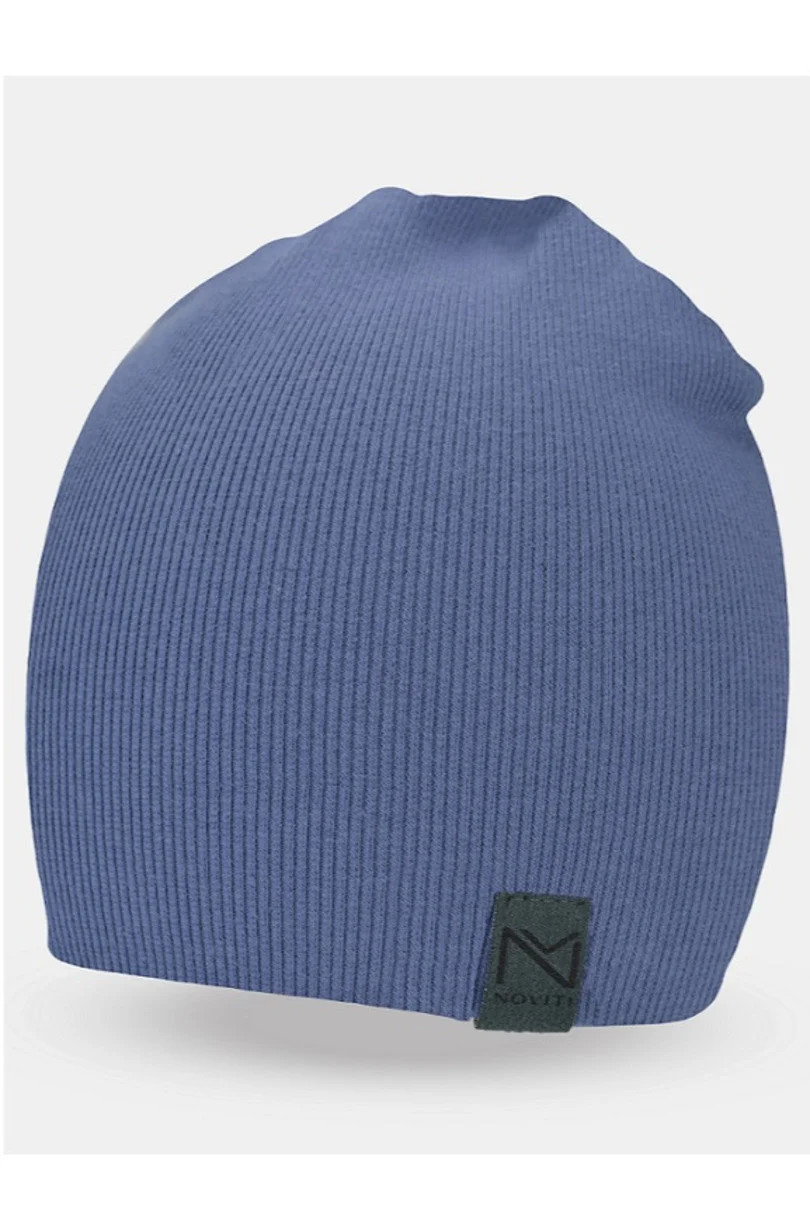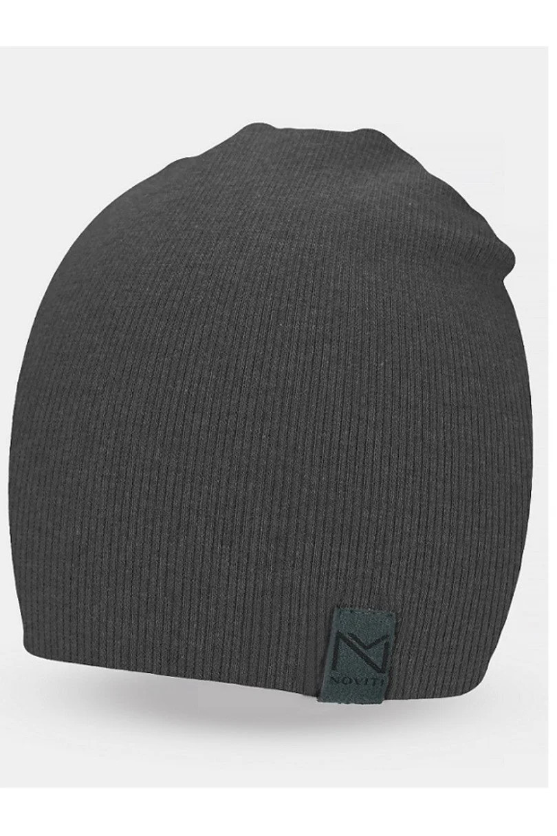 Chlapecká čepice z jednovrstvé žebrované bavlny, zdobená nášivkou.