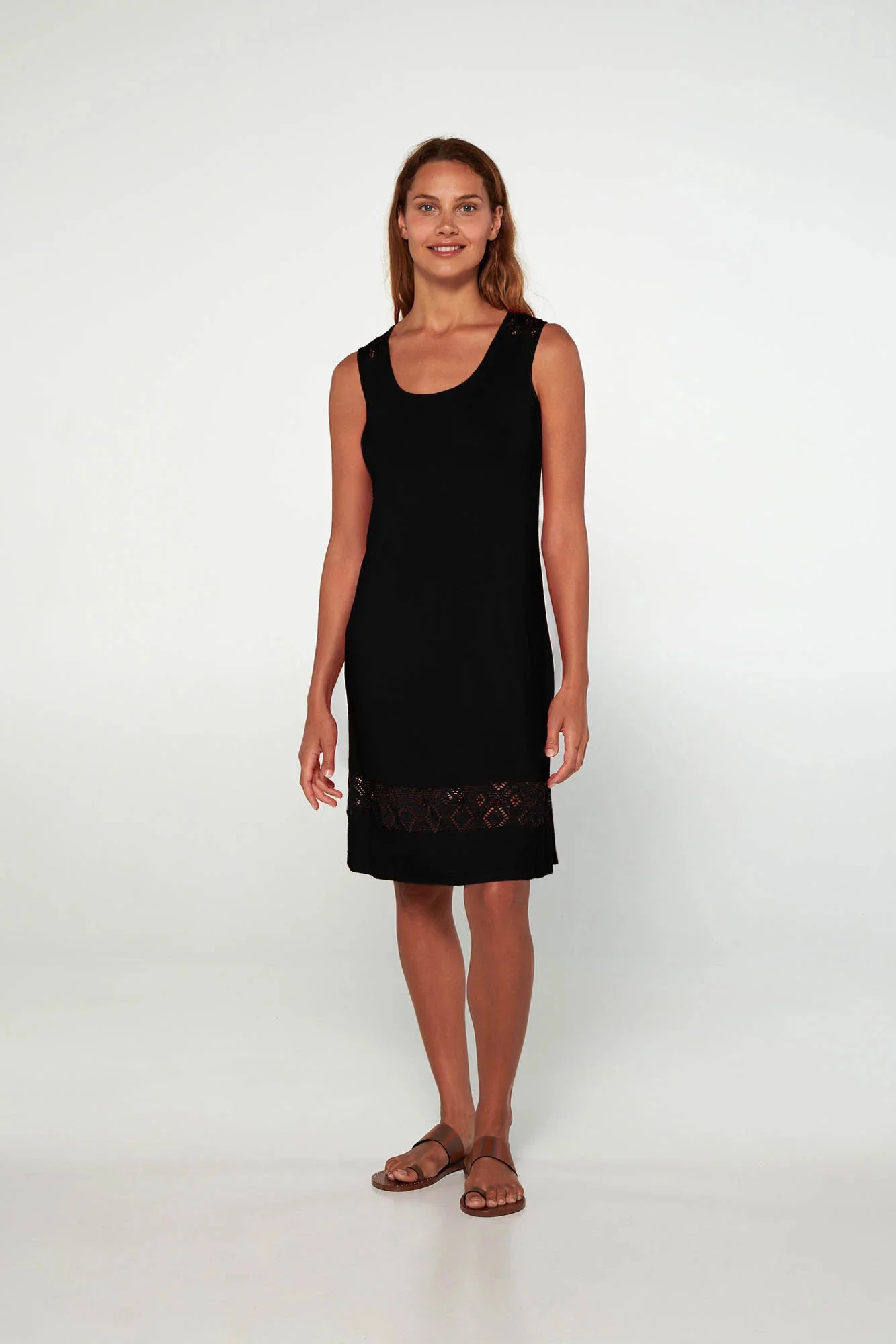 Produkt Jednoduché šaty bez rukávů 20515 - Vamp prodáváme v těchto velikostech: XLa barvách černá5210125284550
