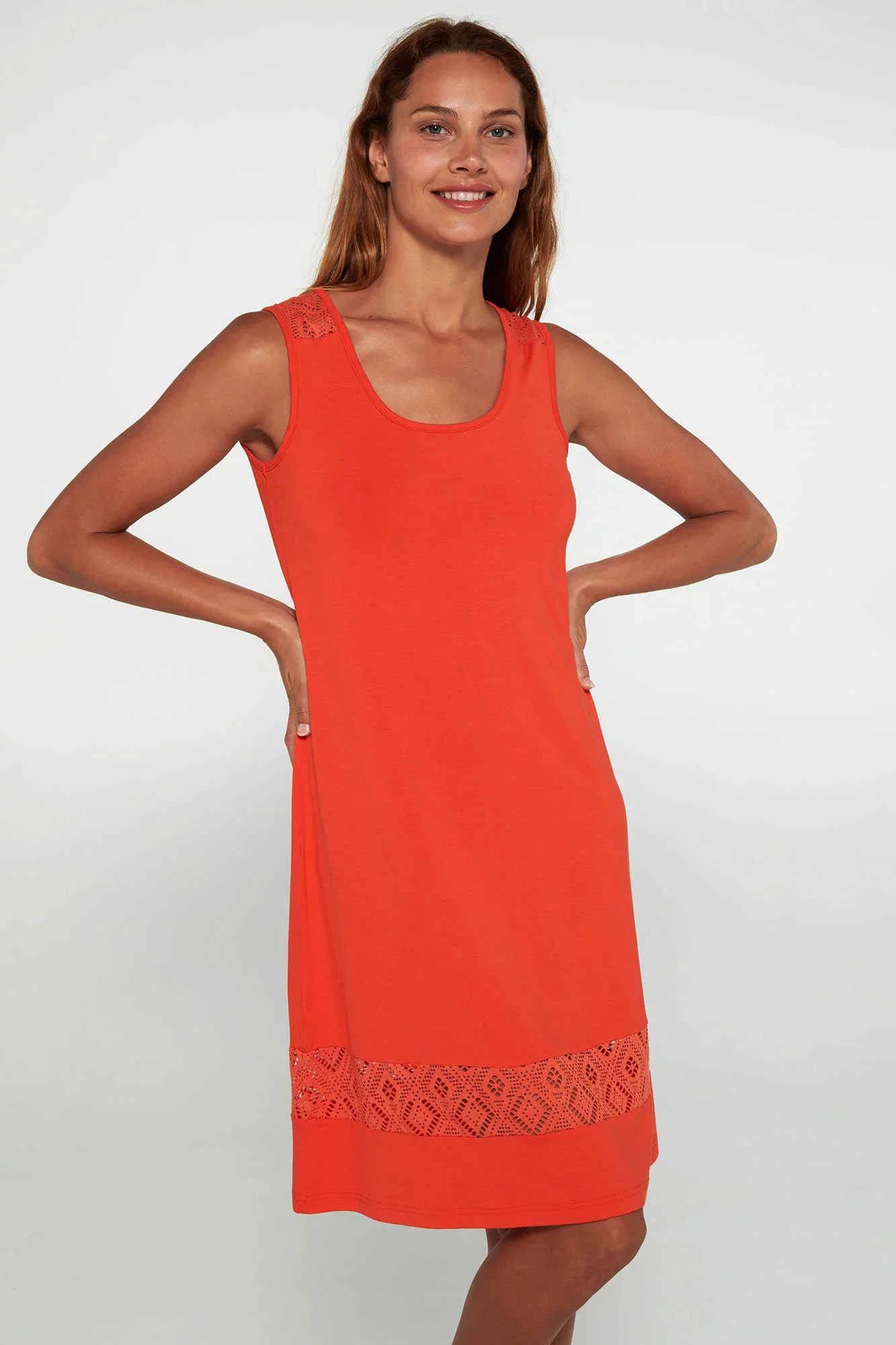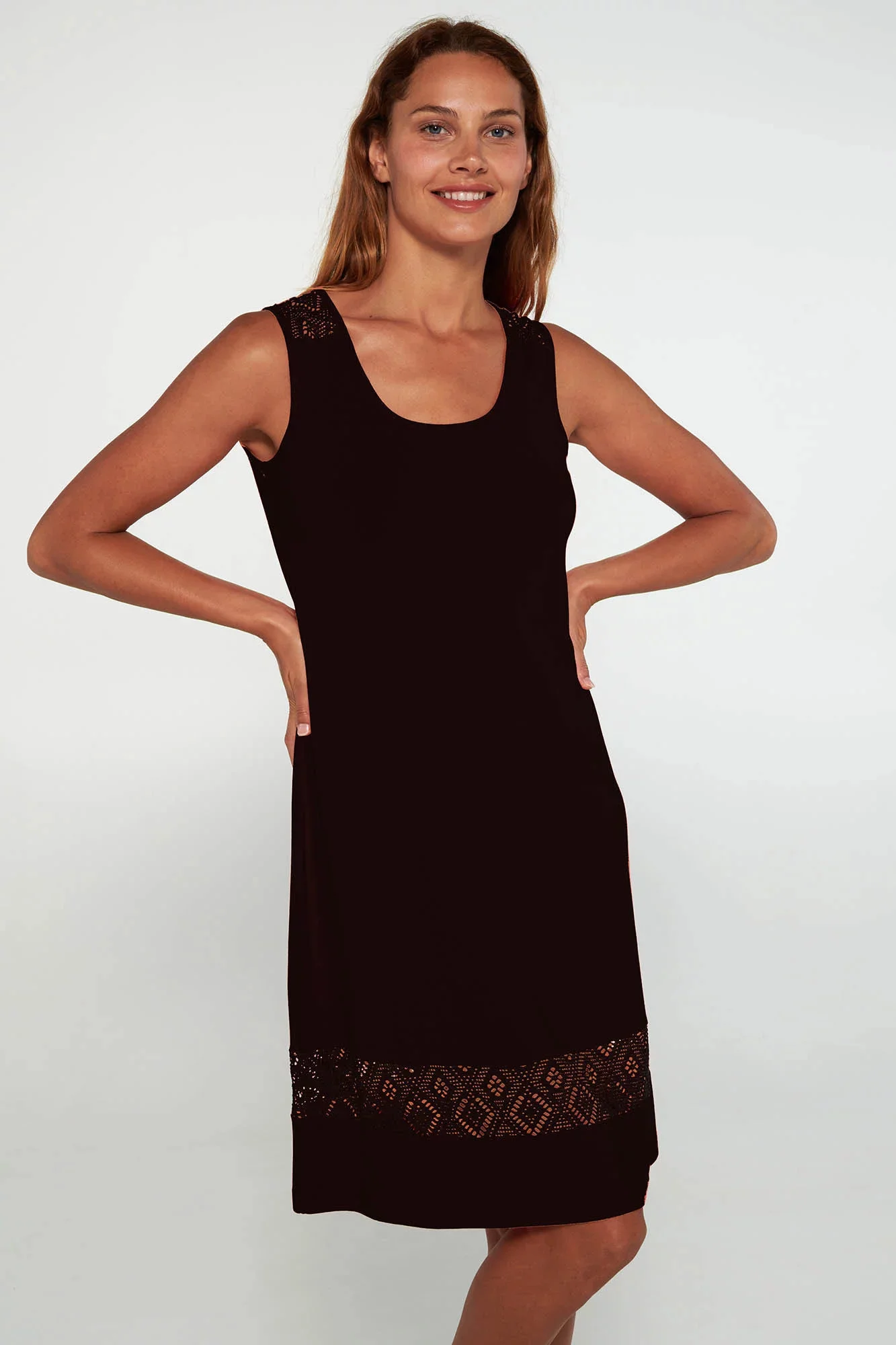 Šaty bez rukávů s kulatým výstřihem a perforovanými detaily na zádech. Jednoduchý návrh, který poskytne pohodlí a eleganci na každý den.