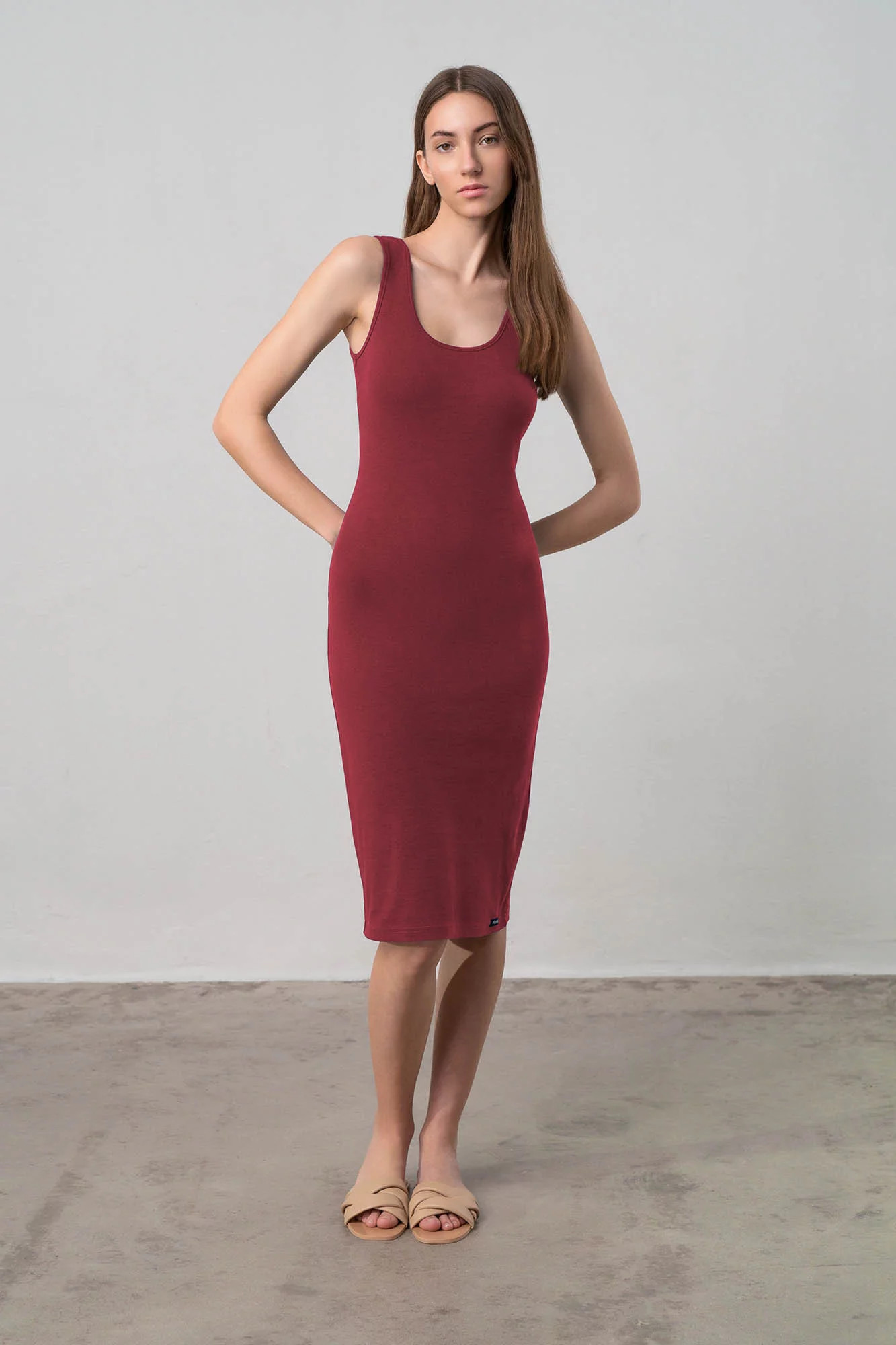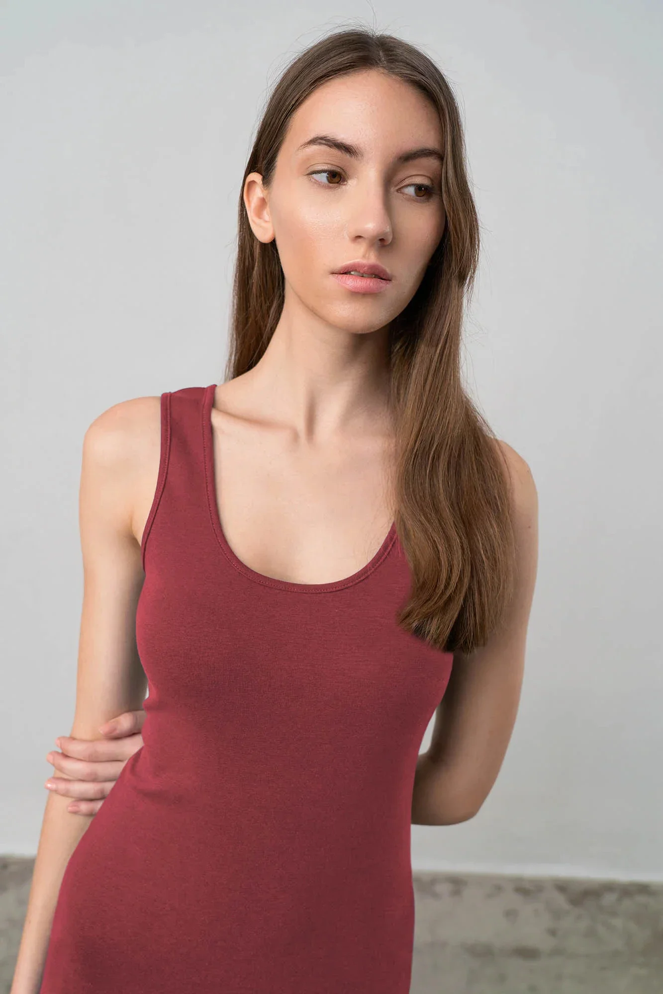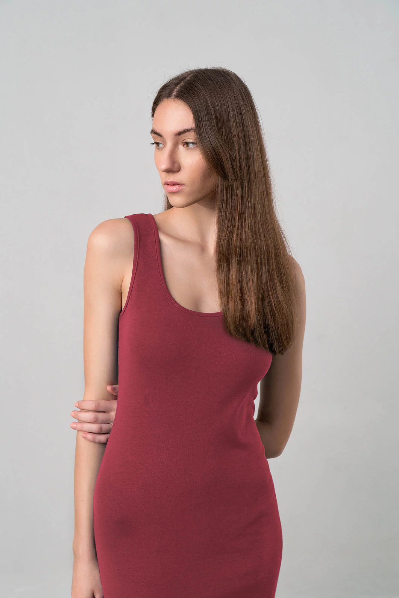 Produkt Jednoduché šaty bez rukávů 70030 - Vamp prodáváme v těchto velikostech: La barvách bordó5210125208068