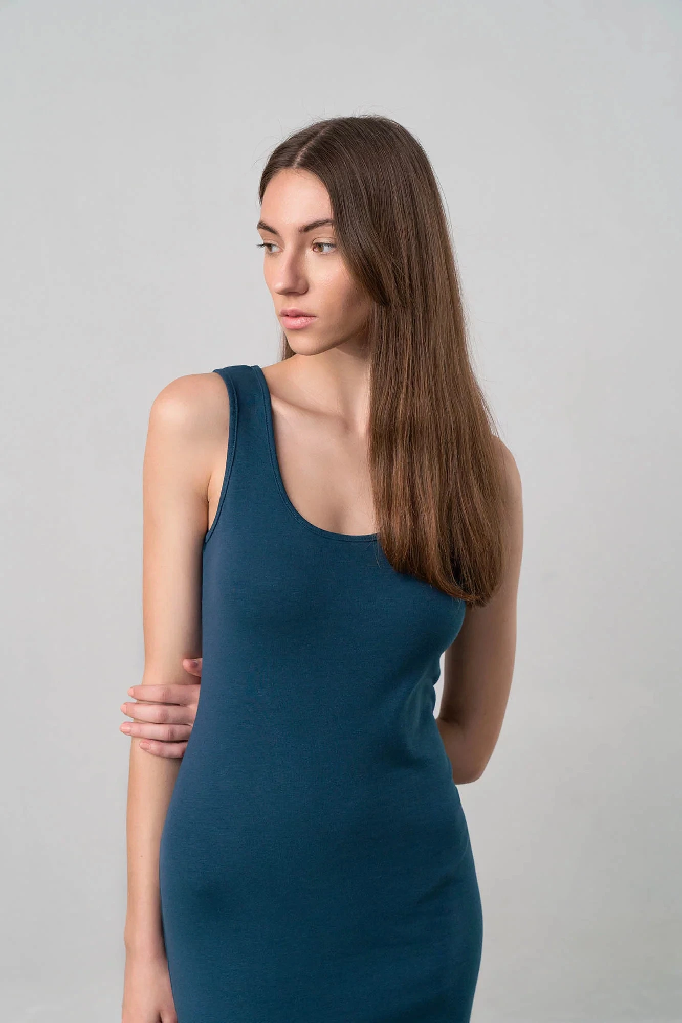 Šaty bez rukávů pohodlného střihu s kulatým výstřihem. Příjemné šaty na každodenní nošení i na letní dovolenou.