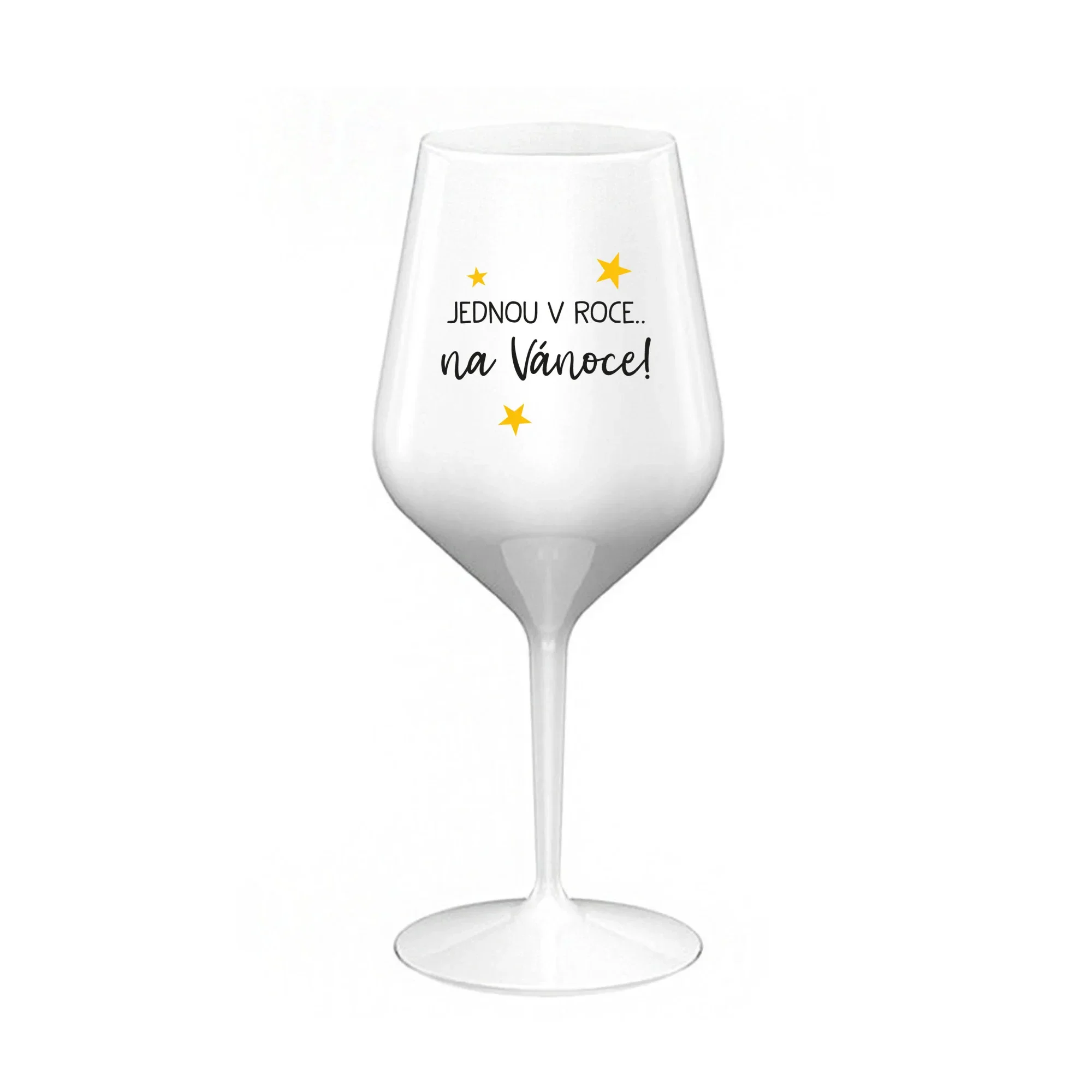 JEDNOU V ROCE NA VÁNOCE - bílá nerozbitná sklenice na víno 470 ml