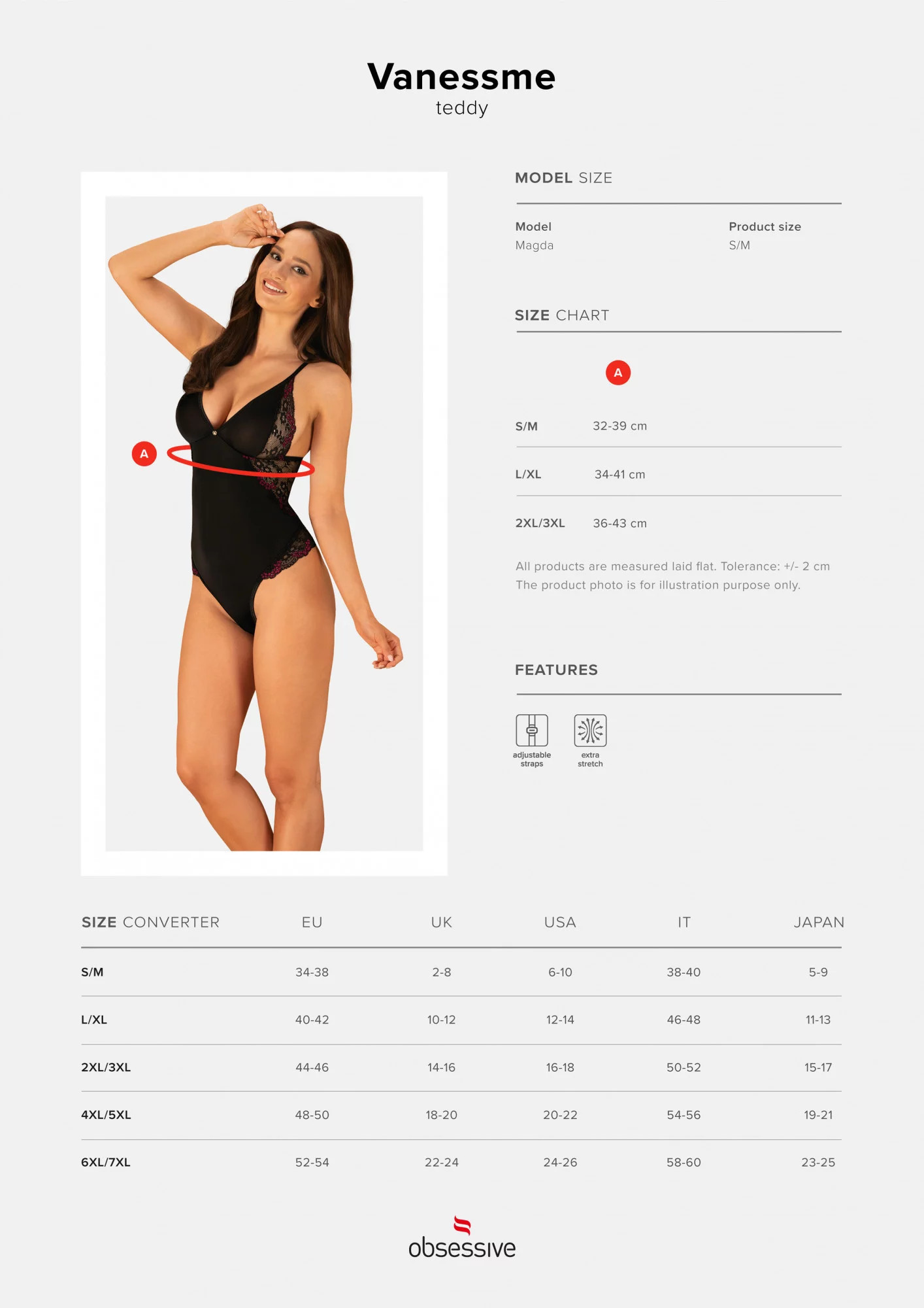 Produkt Jemné body Vanessme teddy - Obsessive prodáváme v těchto velikostech: S/M, L/XLa barvách černá5901688235089, 5901688235096