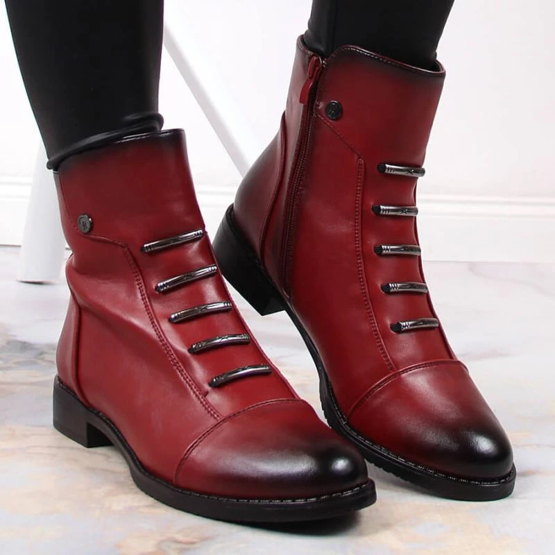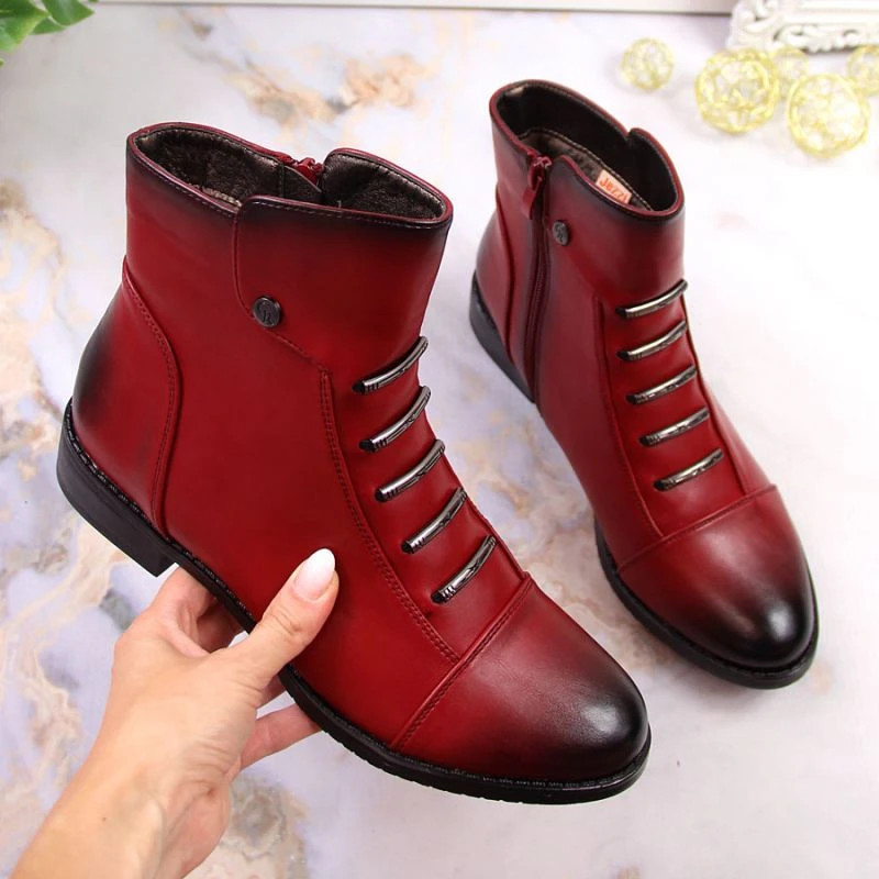 Jezzi W JEZ52G zateplené boty s ozdobami červená