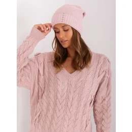 Světle růžová zimní čepice s aplikací RUE PARIS .