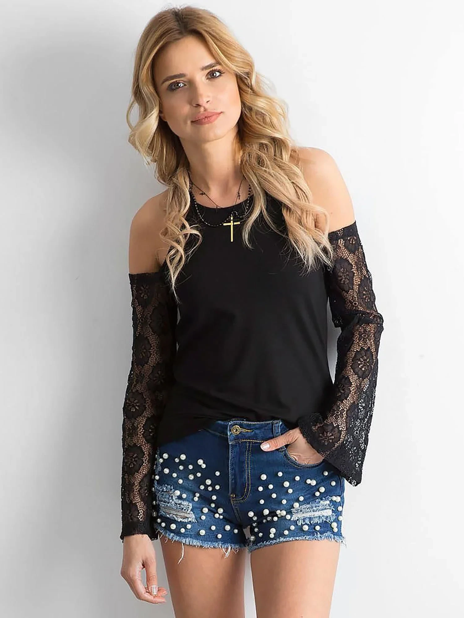 Džínové šortky s perlami v tmavě modré barvě.