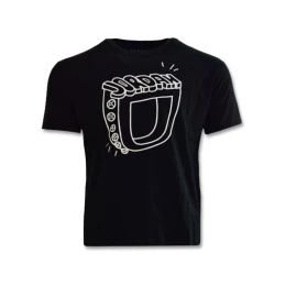 Na přední straně trička je potisk kroužků v bílé barvě.