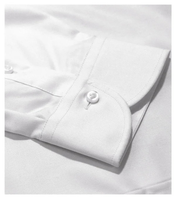 navrženo předním českým krejčím Romanem Humlíčkem příze z extra dlouhých vláken projmutý střih s bočními švy dvojité sedlo a záševky na zadním dílu pasové záševky na předním dílu dvoudílný košilový límec přední kraje začištěny légou dlouhé rukávy s kulatou manžetou na 2 knoflíčky perleťové knoflíčky v barvě 00 (2 náhradní navíc) tvarovaný dolní kraj