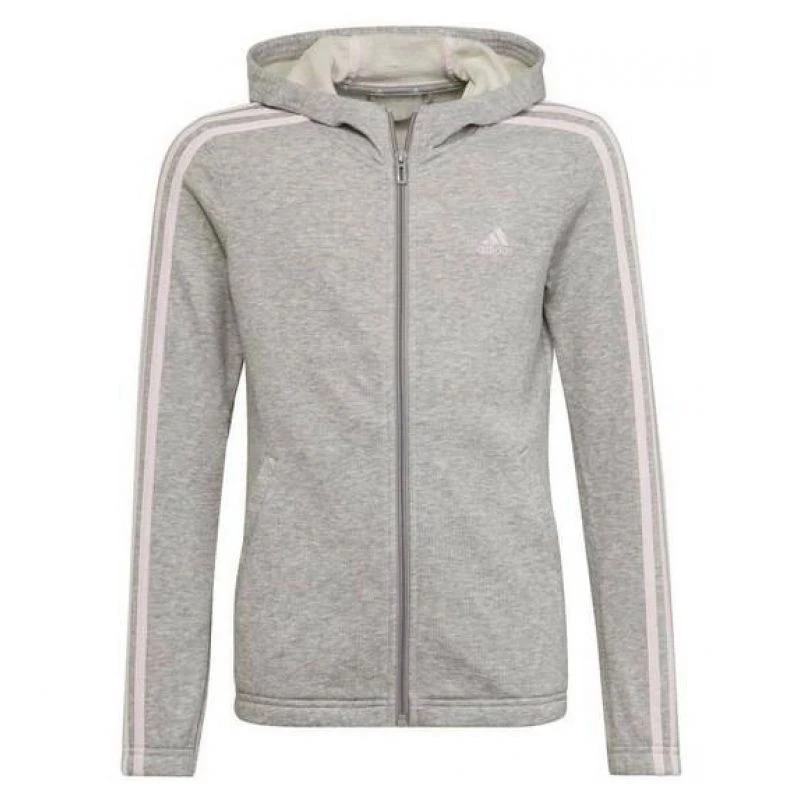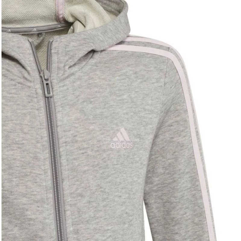 - Dětská sportovní mikina Adidas v šedé barvě s růžovými pruhy a logem.