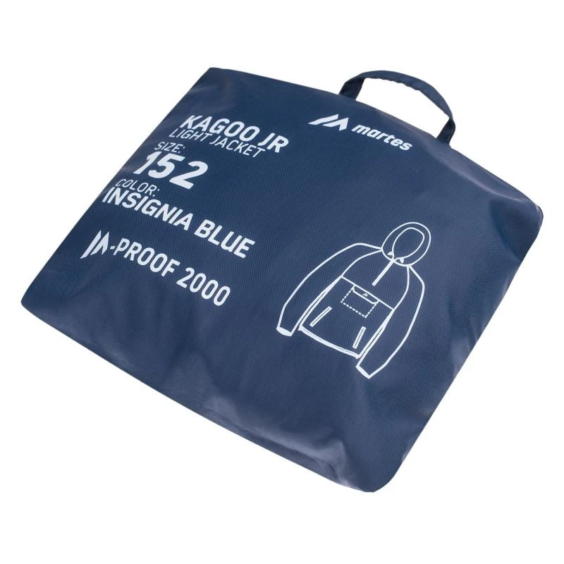 Bunda KAGOO JR značky Martes Essentials má krátký zip, který usnadňuje oblékání a svlékání bundy. Podlepené švy chrání švy před promočením, což zvyšuje nepromokavost bundy. Stahovací šňůrka v pase dává možnost dobrého přizpůsobení. Představený model má navíc přední kapsu a kapuci. Díky nízké hmotnosti a sbalitelnosti se snadno sbalí do batohu.