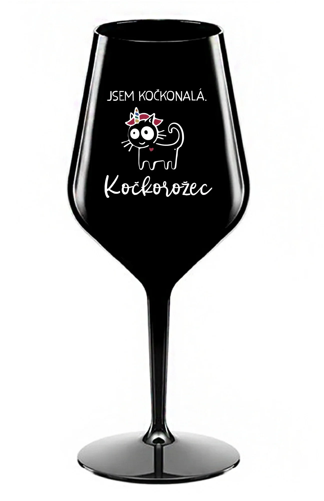 JSEM KOČKONALÁ. KOČKOROŽEC - černá nerozbitná sklenice na víno 470 ml