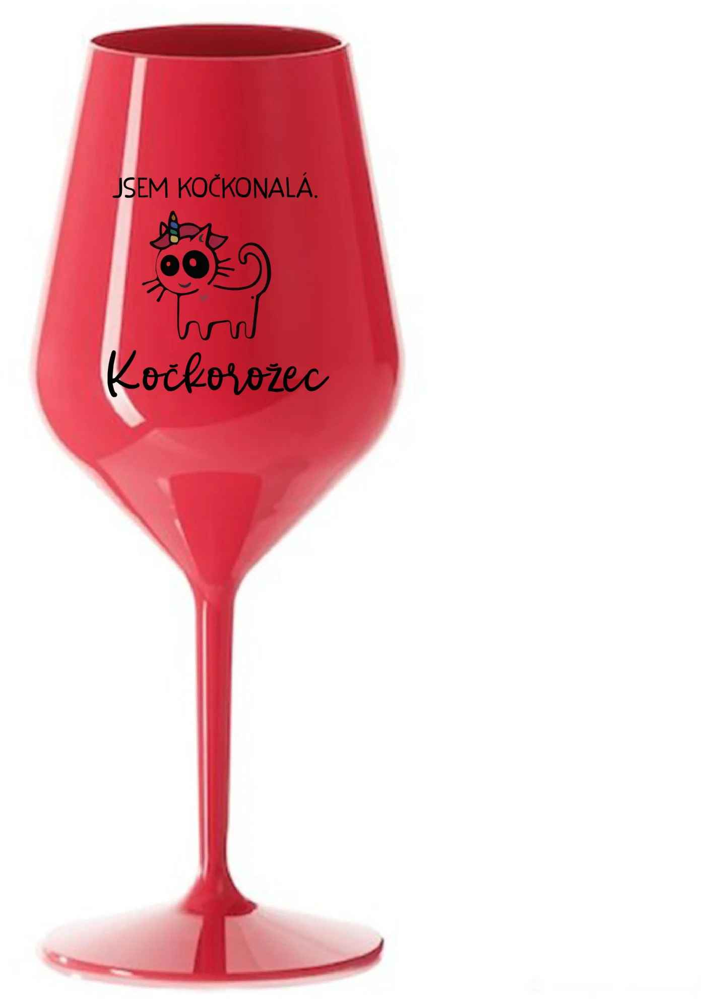 JSEM KOČKONALÁ. KOČKOROŽEC - červená nerozbitná sklenice na víno 470 ml